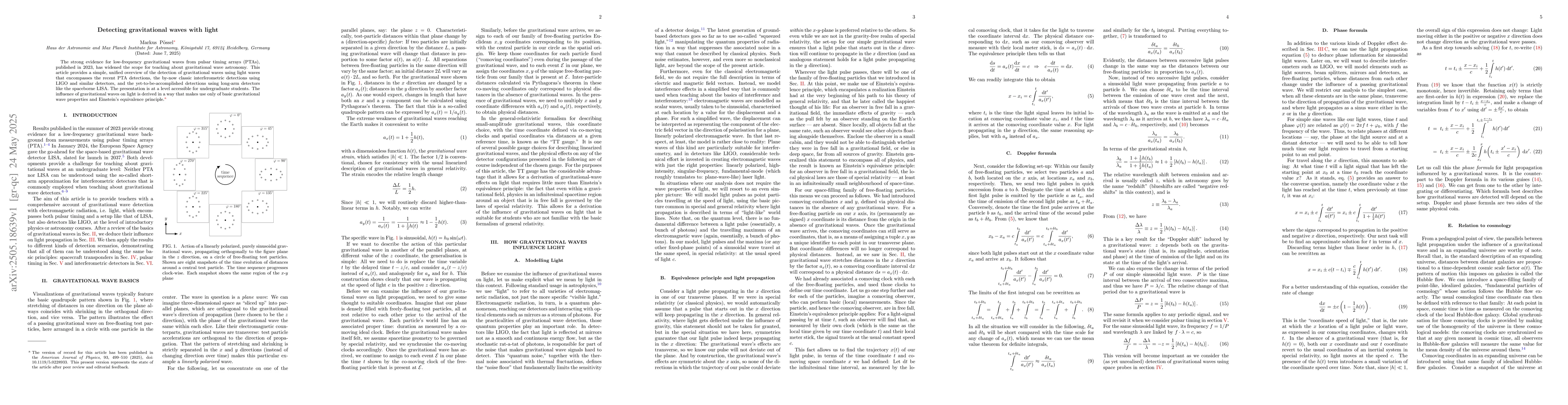 The paper provides a unified overview of gravitational wave detection methods, utilizing light waves, encompassing pulsar timing arrays (PTA) detections, interferometric detections with LIGO, and future long-arm detectors like LISA, presented at an undergraduate level.