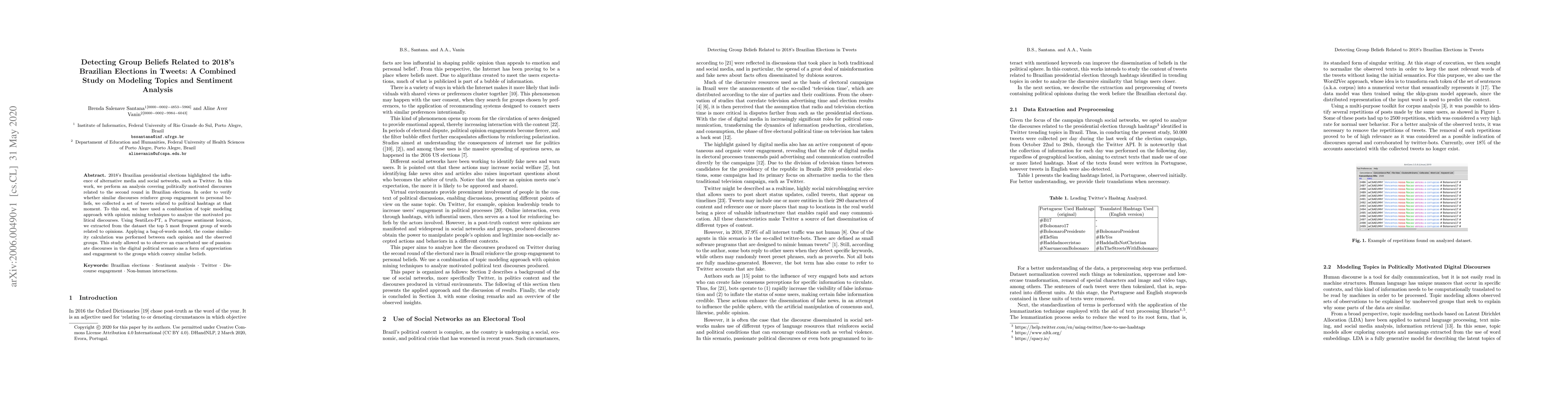 This study analyzes politically motivated discourses from Twitter during the 2018 Brazilian presidential elections using a combination of topic modeling and sentiment analysis. The research reveals an intensified use of passionate language to engage with and reinforce group beliefs.