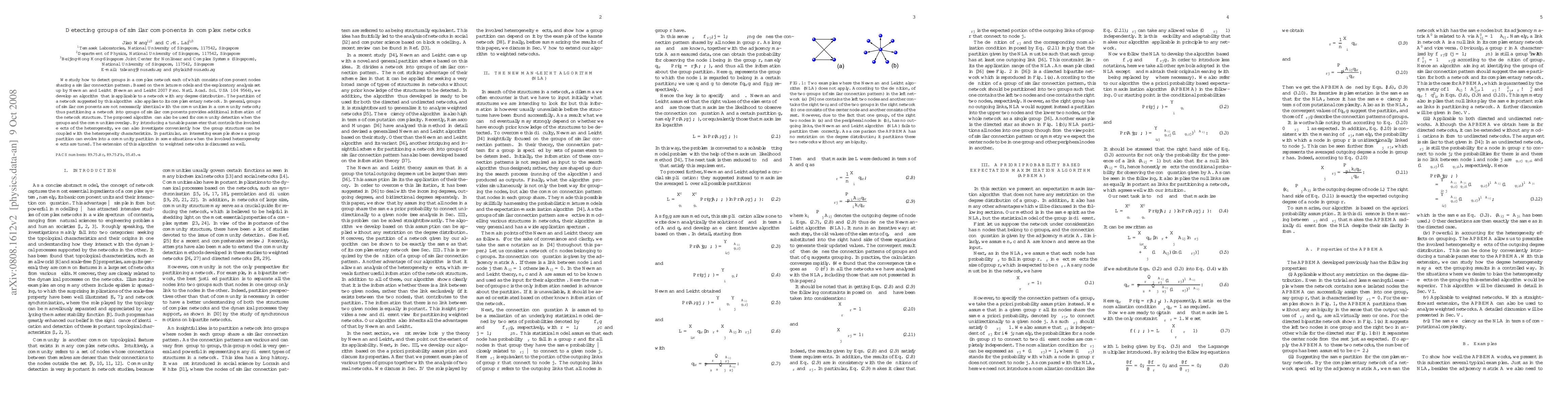 We study how to detect groups in a complex network each of which consists of component nodes sharing a similar connection pattern. Based on the mixture models and the exploratory analysis set up by Newman and Leicht (Newman and Leicht 2007 {\it Proc. Natl. Acad. Sci. USA} {\bf 104} 9564), we develop an algorithm that is applicable to a network with any degree distribution. The partition of a network suggested by this algorithm also applies to its complementary network. In general, groups of similar components are not necessarily identical with the communities in a community network; thus partitioning a network into groups of similar components provides additional information of the network structure. The proposed algorithm can also be used for community detection when the groups and the communities overlap. By introducing a tunable parameter that controls the involved effects of the heterogeneity, we can also investigate conveniently how the group structure can be coupled with the heterogeneity characteristics. In particular, an interesting example shows a group partition can evolve into a community partition in some situations when the involved heterogeneity effects are tuned. The extension of this algorithm to weighted networks is discussed as well.