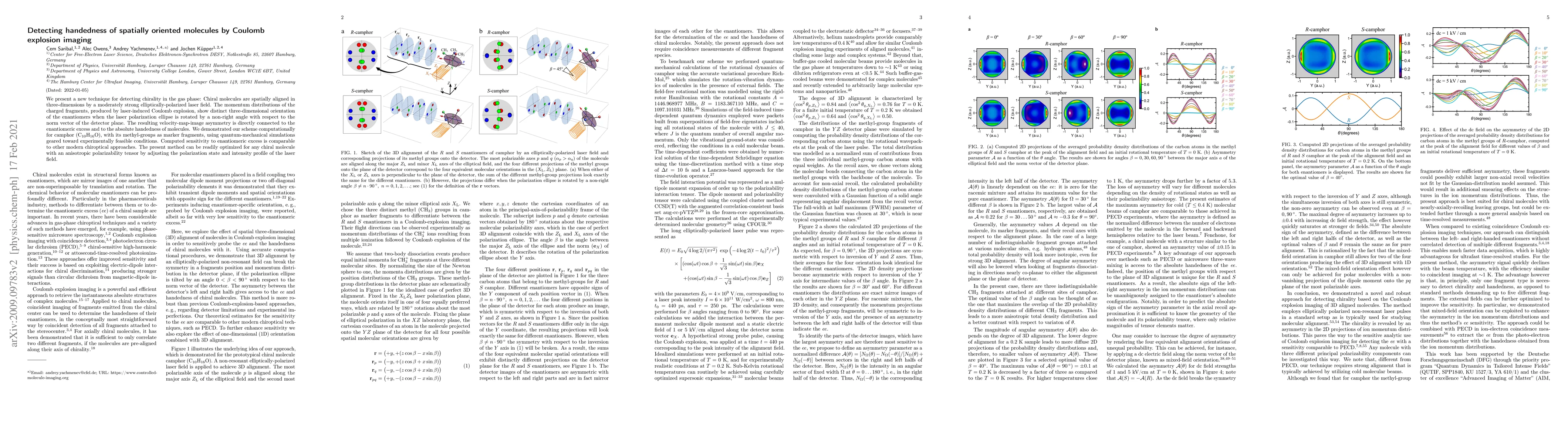 This paper introduces a novel technique for detecting chirality in gas-phase molecules using Coulomb explosion imaging, where chiral molecules are aligned by an elliptically polarized laser, and the resulting fragment momentum distribution asymmetry reveals the molecule's handedness and enantiomeric excess. Computational simulations for camphor demonstrate comparable sensitivity to modern chiroptical methods.