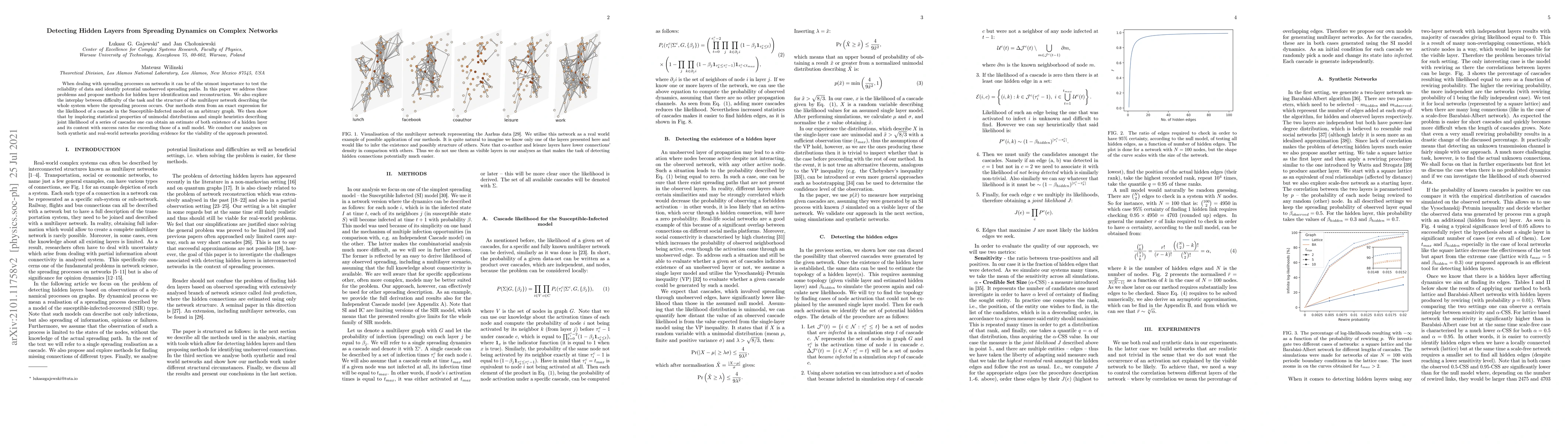 Researchers propose a method to detect hidden layers in complex networks by analyzing spreading dynamics, offering promising results with high success rates using statistical properties of unimodal distributions and simple heuristics.
