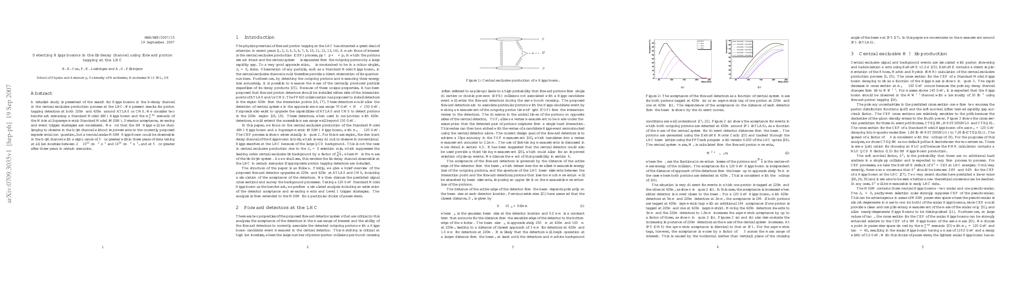 This paper explores the detection of Higgs bosons in the b-decay channel via forward proton tagging at the LHC, finding that while observing a Standard Model Higgs is challenging, a neutral scalar MSSM Higgs could be detected with 3 sigma significance within three years under certain conditions.