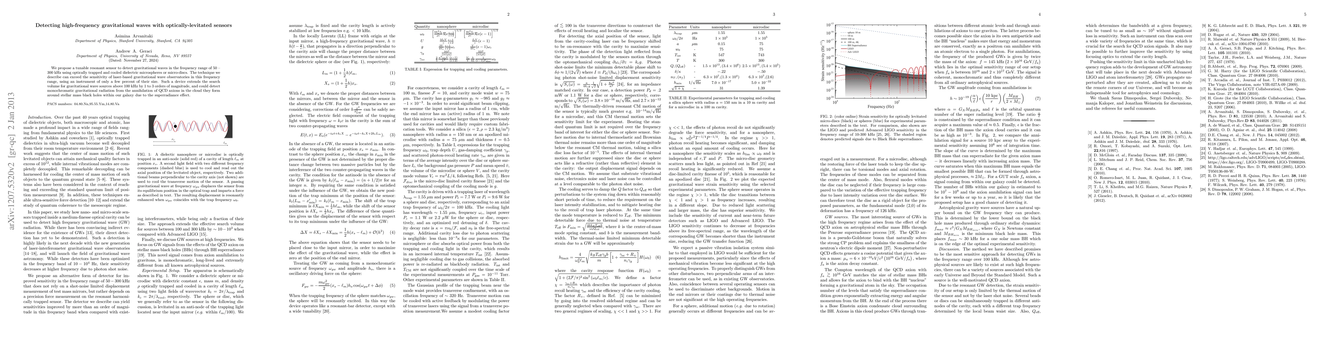 We propose a tunable resonant sensor to detect gravitational waves in the frequency range of 50-300 kHz using optically trapped and cooled dielectric microspheres or micro-discs. The technique we describe can exceed the sensitivity of laser-based gravitational wave observatories in this frequency range, using an instrument of only a few percent of their size. Such a device extends the search volume for gravitational wave sources above 100 kHz by 1 to 3 orders of magnitude, and could detect monochromatic gravitational radiation from the annihilation of QCD axions in the cloud they form around stellar mass black holes within our galaxy due to the superradiance effect.