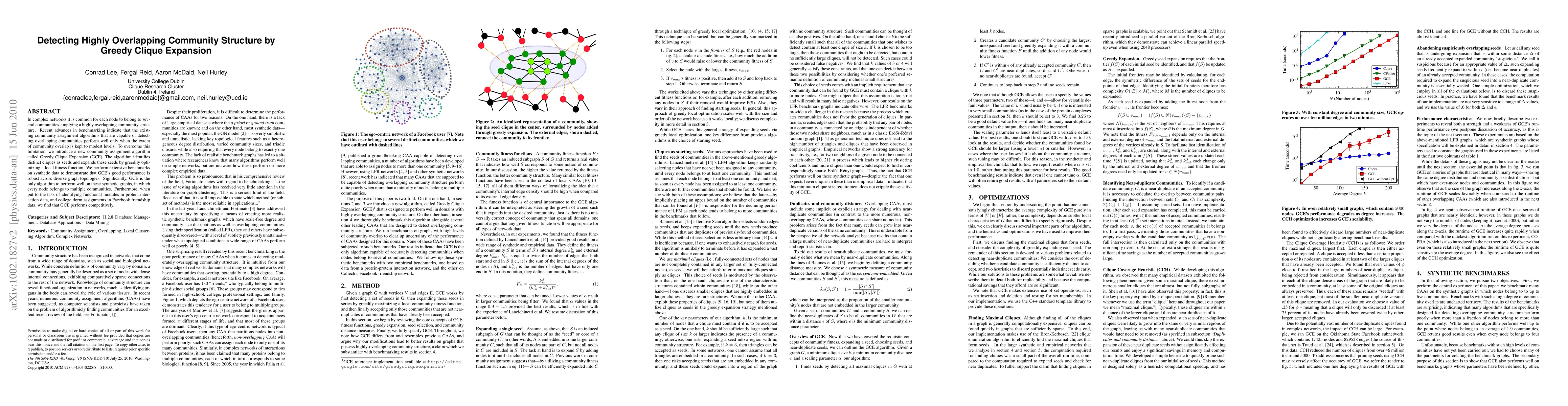 The paper introduces the Greedy Clique Expansion (GCE) algorithm to detect highly overlapping community structures in complex networks. GCE identifies and expands distinct cliques, optimizing a local fitness function, and demonstrates robust performance across diverse graph topologies and real-world datasets.