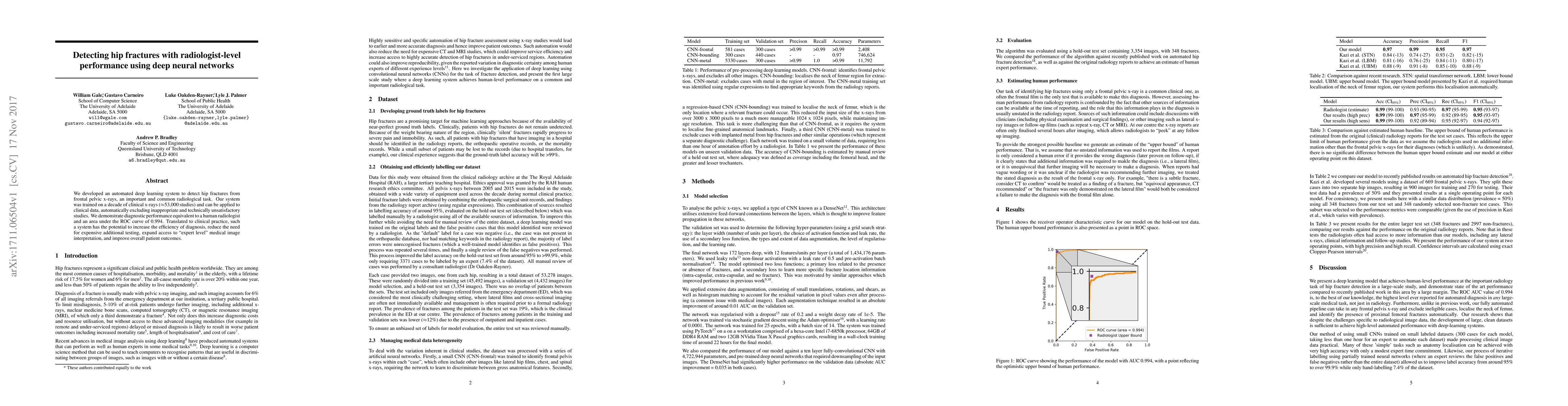 A deep learning system can detect hip fractures from x-rays with diagnostic performance equivalent to a human radiologist, improving diagnosis efficiency and patient outcomes.