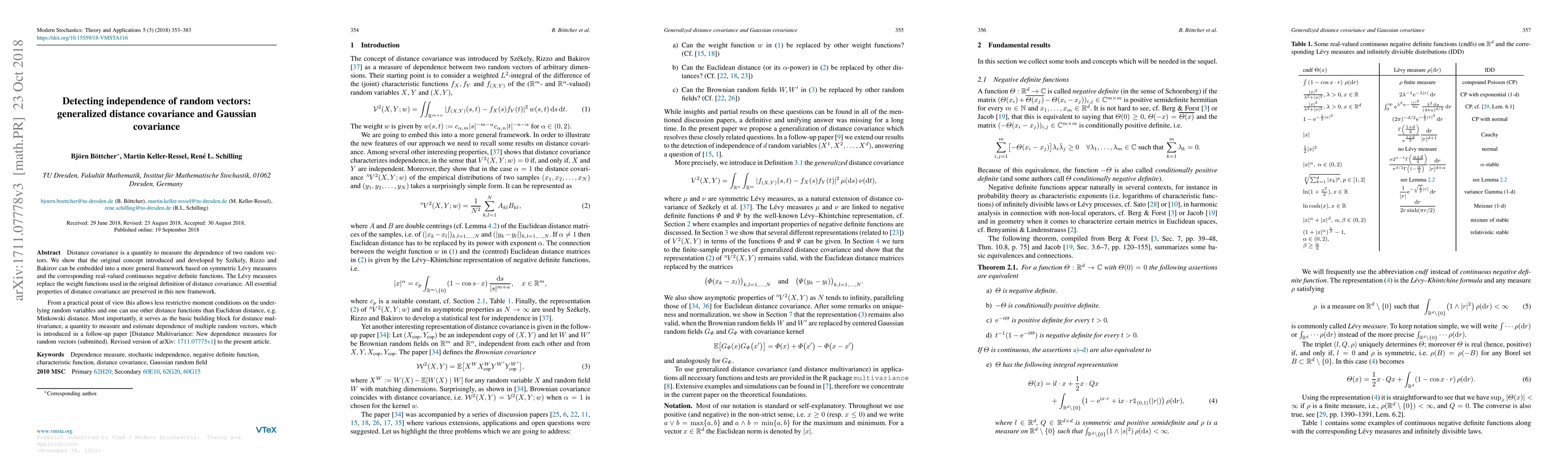 The paper embeds the concept of distance covariance into a more general framework based on symmetric Lévy measures and real-valued continuous negative definite functions, allowing for less restrictive moment conditions and alternative distance functions.