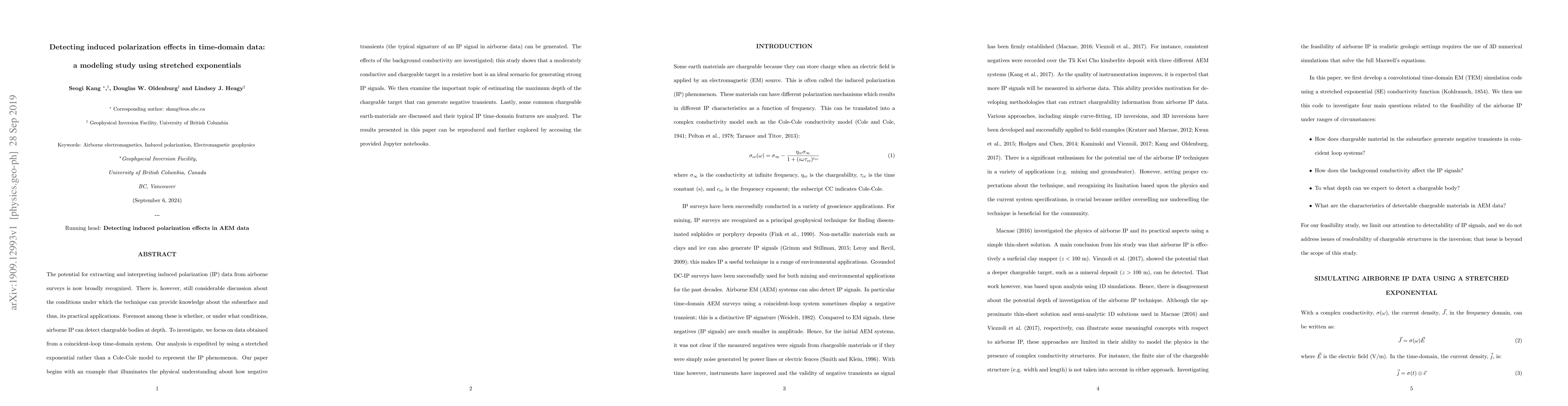 This paper investigates the detection of induced polarization (IP) effects in airborne time-domain data using stretched exponentials, demonstrating that moderately conductive chargeable bodies in resistive hosts generate strong IP signals. The study also estimates the maximum depth of detectable chargeable targets and provides a reproducible analysis via Jupyter notebooks.