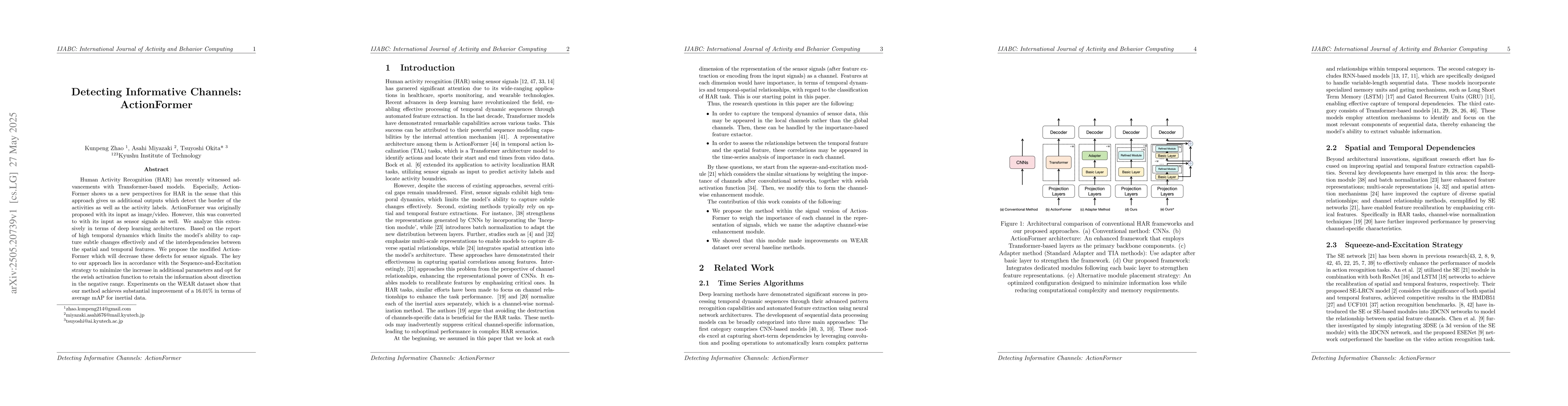 Unlike the original ActionFormer using images/videos, this work extends ActionFormer to effectively handle sensor signals for HAR, introducing improvements in model architecture to address unique challenges posed by temporal sensor data.