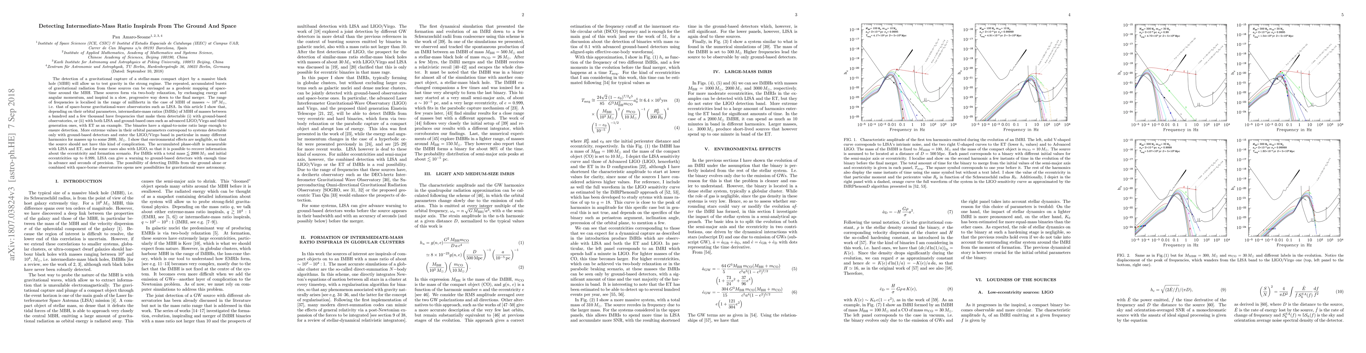 The detection of a gravitational capture of a stellar-mass compact object by a massive black hole (MBH) will allow us to test gravity in the strong regime. These sources form via two-body relaxation, by exchanging energy and angular momentum, and inspiral in a slow, progressive way down to the final merger. The range of frequencies is localised in the range of millihertz in the case of MBH of masses $\sim 10^6\,M_{\odot}$, i.e. that of space-borne gravitational-wave observatories such as LISA. In this article I show that, depending on their orbital parameters, intermediate-mass ratios (IMRIs) of MBH of masses between a hundred and a few thousand have frequencies that make them detectable (i) with ground-based observatories, or (ii) with both LISA and ground-based ones such as advanced LIGO/Virgo and third generation ones, with ET as an example. The binaries have a signal-to-noise ratio large enough to ensure detection. More extreme values in their orbital parameters correspond to systems detectable only with ground-based detectors and enter the LIGO/Virgo band in particular in many different harmonics for masses up to some $2000,\,M_{\odot}$. I show that environmental effects are negligible, so that the source should not have this kind of complication. The accumulated phase-shift is measurable with LISA and ET, and for some cases also with LIGO, so that it is possible to recover information about the eccentricity and formation scenario. For IMRIs with a total mass $\lessapprox 2000\,M_{\odot}$ and initial eccentricities up to $0.999$, LISA can give a warning to ground-based detectors with enough time in advance and seconds of precision. The possibility of detecting IMRIs from the ground alone or combined with space-borne observatories opens new possibilities for gravitational wave astronomy.