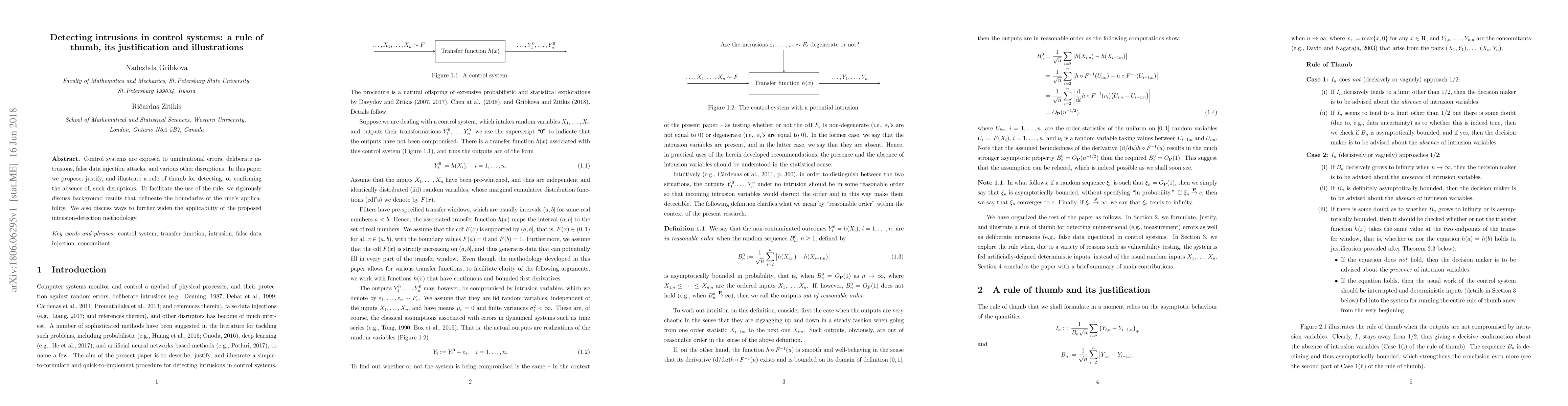 Control systems are exposed to unintentional errors, deliberate intrusions, false data injection attacks, and various other disruptions. In this paper we propose, justify, and illustrate a rule of thumb for detecting, or confirming the absence of, such disruptions. To facilitate the use of the rule, we rigorously discuss background results that delineate the boundaries of the rule's applicability. We also discuss ways to further widen the applicability of the proposed intrusion-detection methodology.