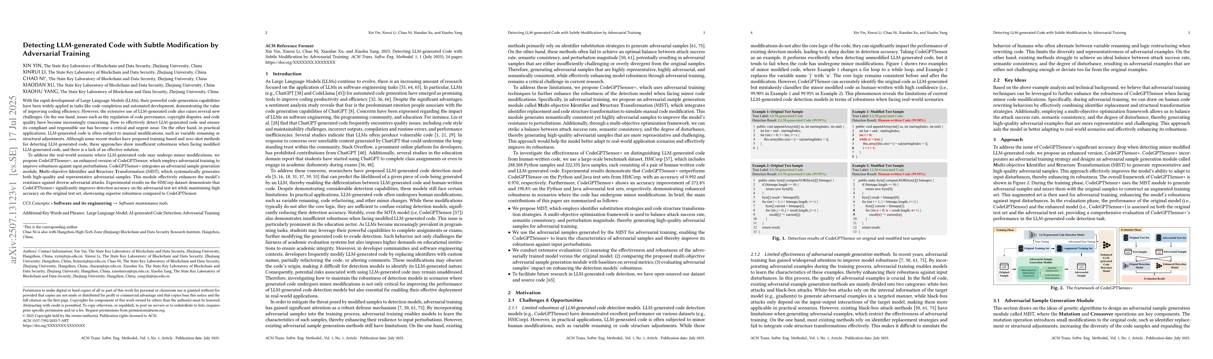 This work is novel by focusing on adversarial training for LLM-generated code detection, specifically addressing the challenge of subtle code modifications, and proposing MIST, a multi-objective optimization approach for generating high-quality adversarial samples.