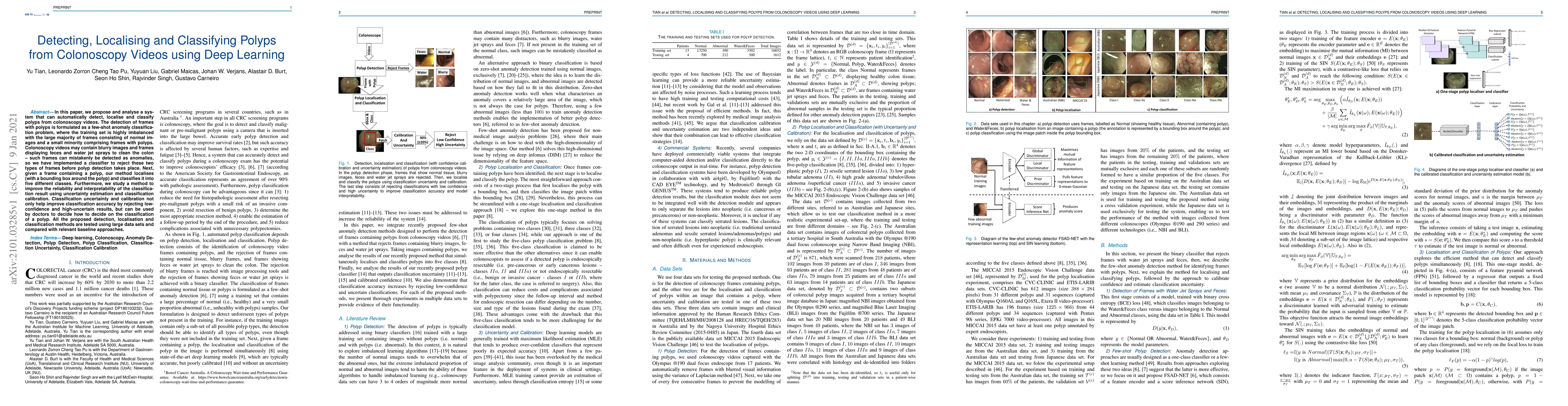 This paper proposes a deep learning system to automatically detect, localise, and classify polyps in colonoscopy videos, addressing the imbalanced training data challenge. It includes a pre-classifier to reject non-polyp anomalies and evaluates the reliability and interpretability of classifications through uncertainty estimation and calibration.