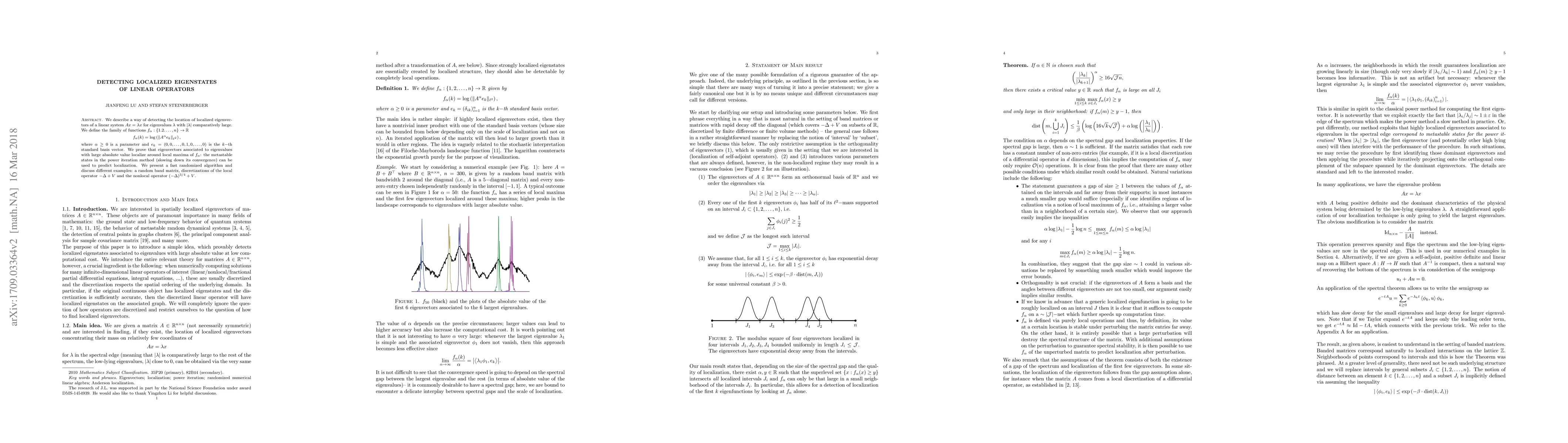 We describe a way of detecting the location of localized eigenvectors of a linear system $Ax = \lambda x$ for eigenvalues $\lambda$ with $|\lambda|$ comparatively large. We define the family of functions $f_{\alpha}: \left\{1.2. \dots, n\right\} \rightarrow \mathbb{R}_{}$ $$ f_{\alpha}(k) = \log \left( \| A^{\alpha} e_k \|_{\ell^2} \right),$$ where $\alpha \geq 0$ is a parameter and $e_k = (0,0,\dots, 0,1,0, \dots, 0)$ is the $k-$th standard basis vector. We prove that eigenvectors associated to eigenvalues with large absolute value localize around local maxima of $f_{\alpha}$: the metastable states in the power iteration method (slowing down its convergence) can be used to predict localization. We present a fast randomized algorithm and discuss different examples: a random band matrix, discretizations of the local operator $-\Delta + V$ and the nonlocal operator $(-\Delta)^{3/4} + V$.