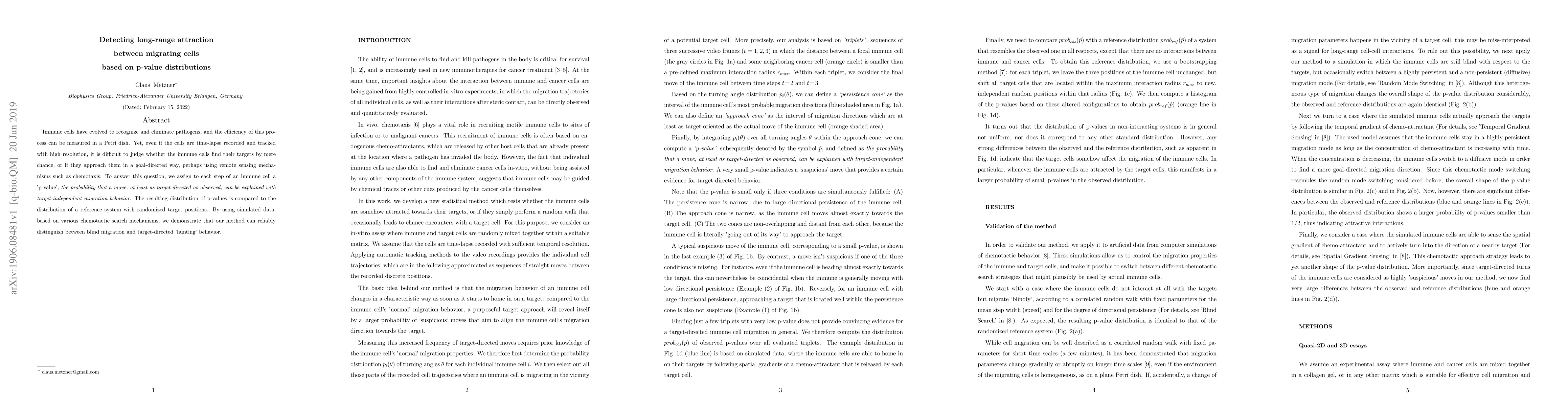 Immune cells have evolved to recognize and eliminate pathogens, and the efficiency of this process can be measured in a Petri dish. Yet, even if the cells are time-lapse recorded and tracked with high resolution, it is difficult to judge whether the immune cells find their targets by mere chance, or if they approach them in a goal-directed way, perhaps using remote sensing mechanisms such as chemotaxis. To answer this question, we assign to each step of an immune cell a 'p-value', the probability that a move, at least as target-directed as observed, can be explained with target-independent migration behavior. The resulting distribution of p-values is compared to the distribution of a reference system with randomized target positions. By using simulated data, based on various chemotactic search mechanisms, we demonstrate that our method can reliably distinguish between blind migration and target-directed 'hunting' behavior.