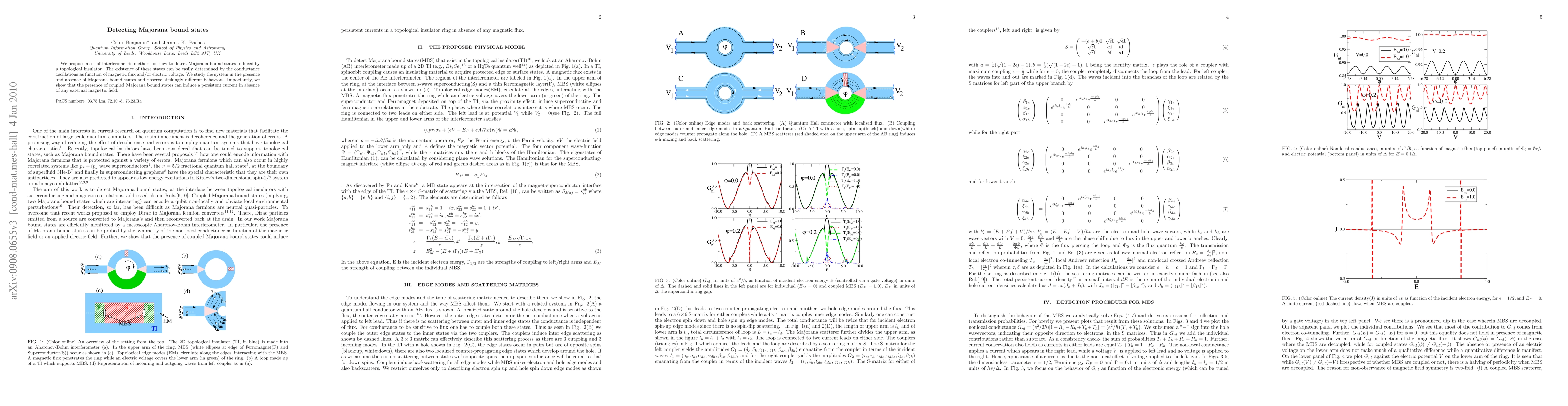 We propose a set of interferometric methods on how to detect Majorana bound states induced by a topological insulator. The existence of these states can be easily determined by the conductance oscillations as function of magnetic flux and/or electric voltage. We study the system in the presence and absence of Majorana bound states and observe strikingly different behaviors. Importantly, we show that the presence of coupled Majorana bound states can induce a persistent current in absence of any external magnetic field.
