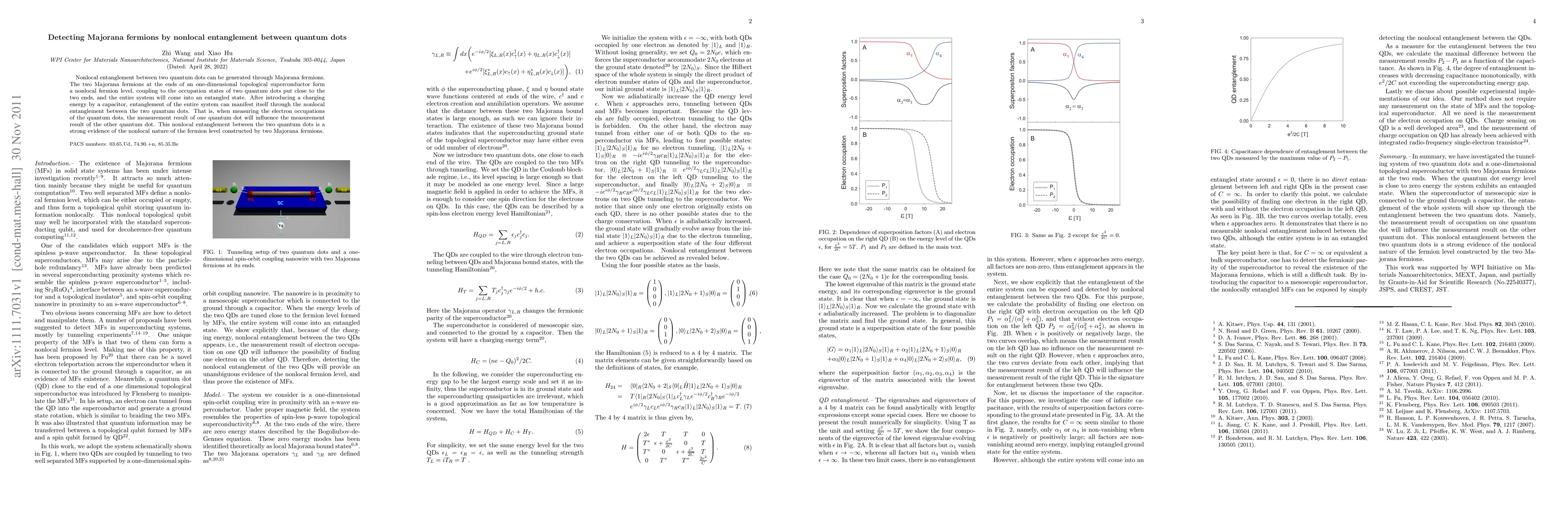 This paper proposes a method to detect Majorana fermions by exploiting nonlocal entanglement between two quantum dots, where Majorana fermions generate a fermion level coupling the quantum dots. The presence of a capacitor introduces charging energy, causing the entanglement to manifest as correlated measurements between the quantum dots, thus providing evidence of the Majorana fermions' nonlocal properties.