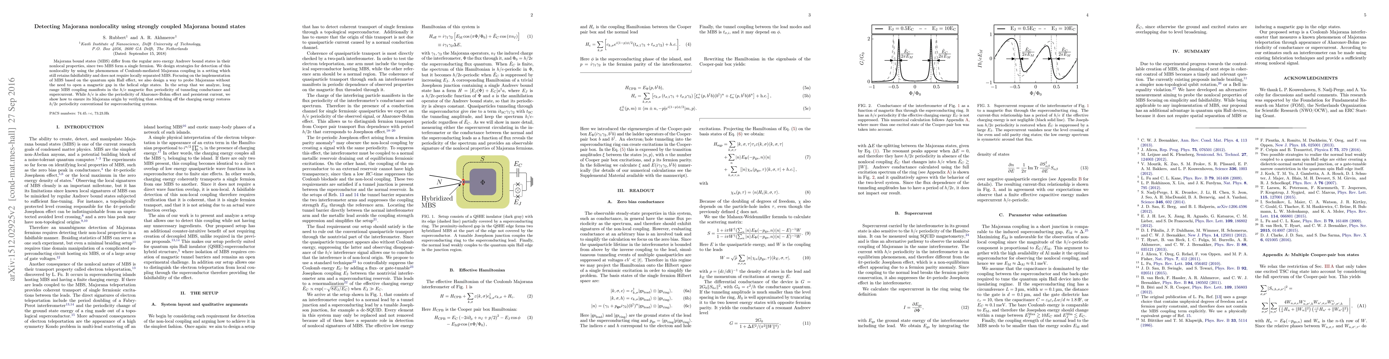 Majorana bound states (MBS) differ from the regular zero energy Andreev bound states in their nonlocal properties, since two MBS form a single fermion. We design strategies for detection of this nonlocality by using the phenomenon of Coulomb-mediated Majorana coupling in a simplest setting which still retains falsifiability. Focusing on the implementation of MBS based on the quantum spin Hall effect, we also design a way to probe Majoranas without the need to open a magnetic gap in the helical edge states. In the setup that we analyse, long range MBS coupling manifests in the $h/e$ magnetic flux periodicity of tunneling conductance and supercurrent. While $h/e$ is also the periodicity of Aharonov-Bohm effect and persistent current, we show how to ensure its Majorana origin by verifying that switching off the charging energy restores $h/2e$ periodicity conventional for superconducting systems.