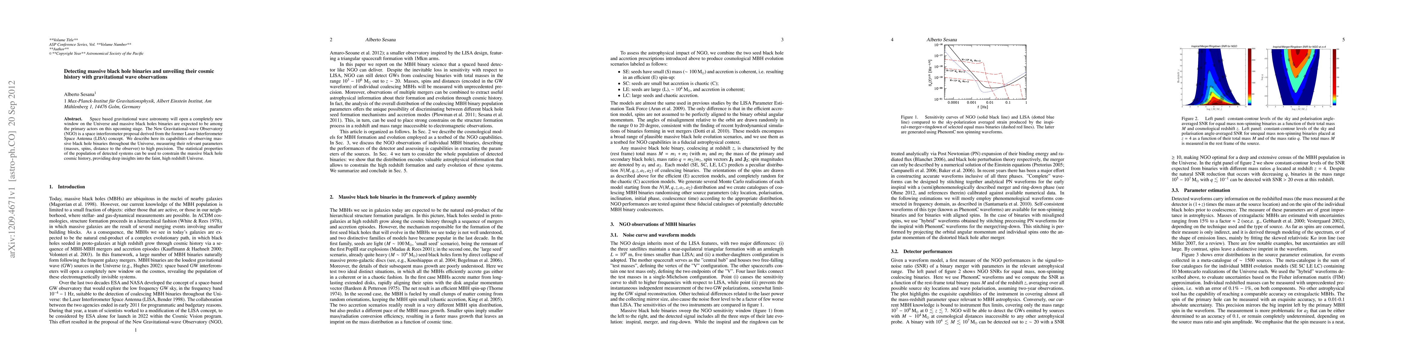 The New Gravitational-wave Observatory (NGO) is designed to detect massive black hole binaries via gravitational waves, offering precise measurements of their masses, spins, and distances. This data will help unveil the cosmic history of massive black holes and provide insights into the high redshift Universe.