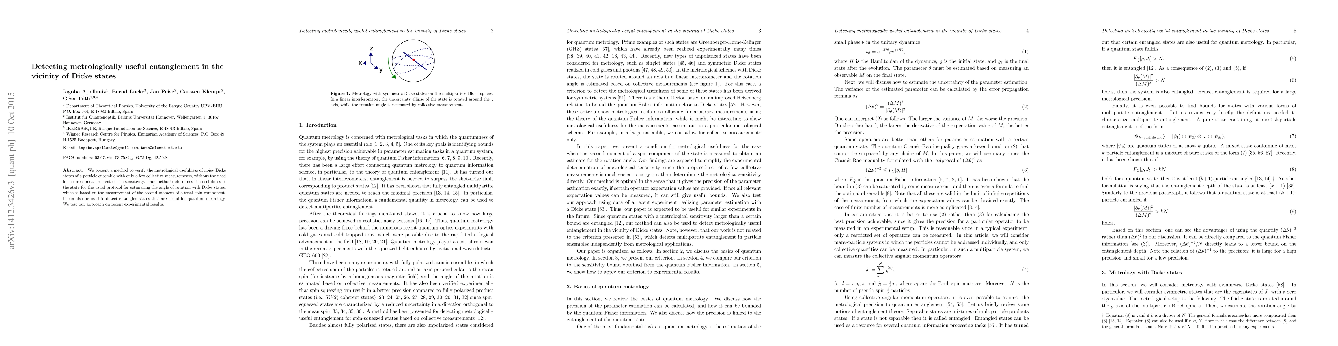 We present a method to verify the metrological usefulness of noisy Dicke states of a particle ensemble with only a few collective measurements, without the need for a direct measurement of the sensitivity. Our method determines the usefulness of the state for the usual protocol for estimating the angle of rotation with Dicke states, which is based on the measurement of the second moment of a total spin component. It can also be used to detect entangled states that are useful for quantum metrology. We test our approach on recent experimental results.