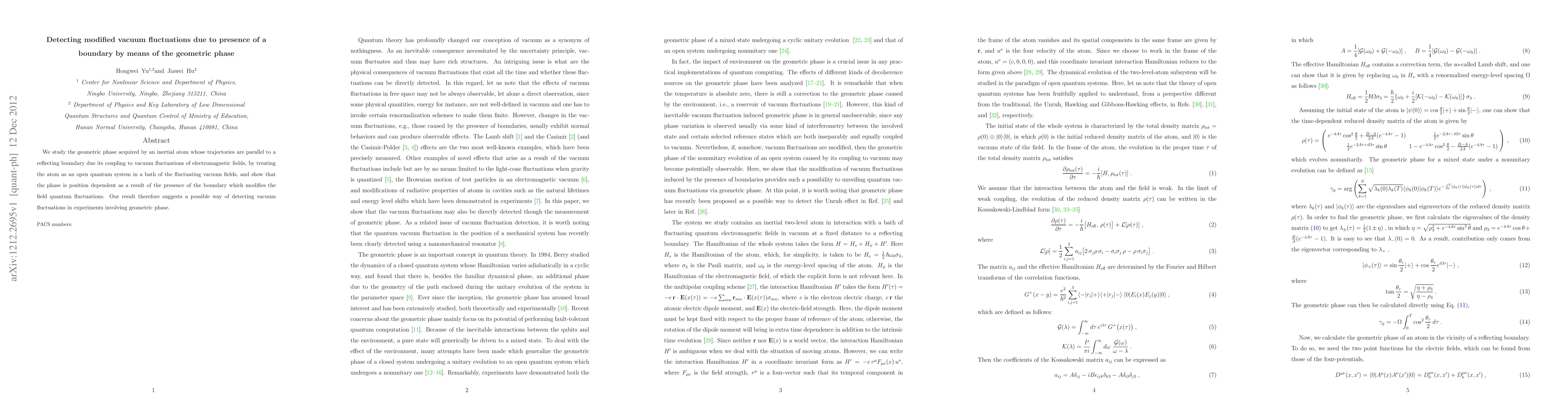 This paper investigates the geometric phase acquired by an inertial atom near a reflecting boundary due to its coupling with modified vacuum fluctuations of electromagnetic fields. The study shows that the phase depends on the atom's position, indicating a method for detecting these modified vacuum fluctuations through geometric phase experiments.