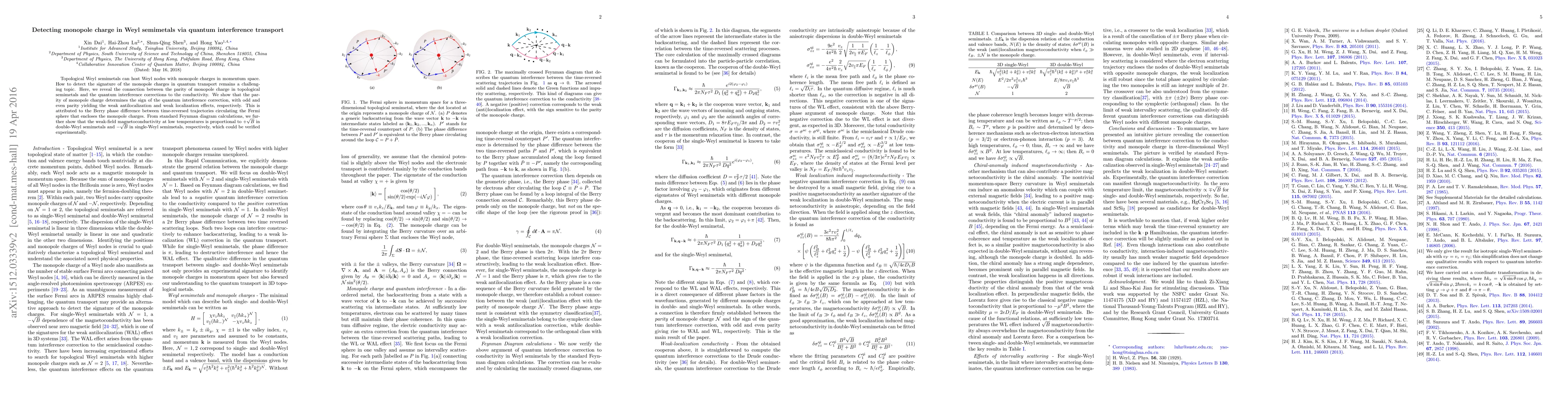 Summary: The paper explores detecting monopole charge signatures in topological Weyl semimetals through quantum interference in transport. It reveals that the parity of monopole charge determines the sign of quantum interference corrections, leading to weak anti-localization or weak localization effects, and proposes experimental verification through weak-field magnetoconductivity proportional to $\pm\sqrt{B}$.