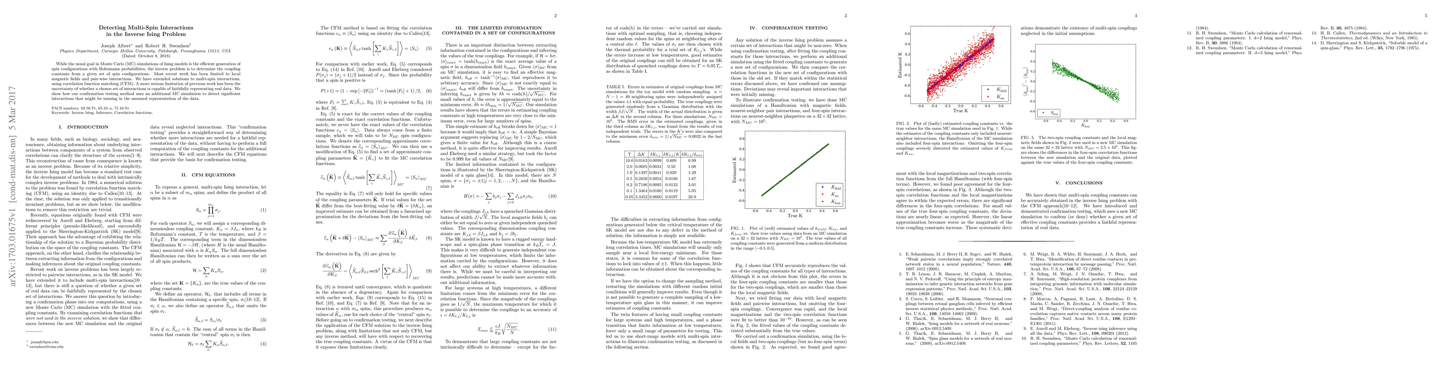 While the usual goal in Monte Carlo (MC) simulations of Ising models is the efficient generation of spin configurations with Boltzmann probabilities, the inverse problem is to determine the coupling constants from a given set of spin configurations. Most recent work has been limited to local magnetic fields and pair-wise interactions. We have extended solutions to multi-spin interactions, using correlation function matching (CFM). A more serious limitation of previous work has been the uncertainty of whether a chosen set of interactions is capable of faithfully representing real data. We show how our confirmation testing method uses an additional MC simulation to detect significant interactions that might be missing in the assumed representation of the data.