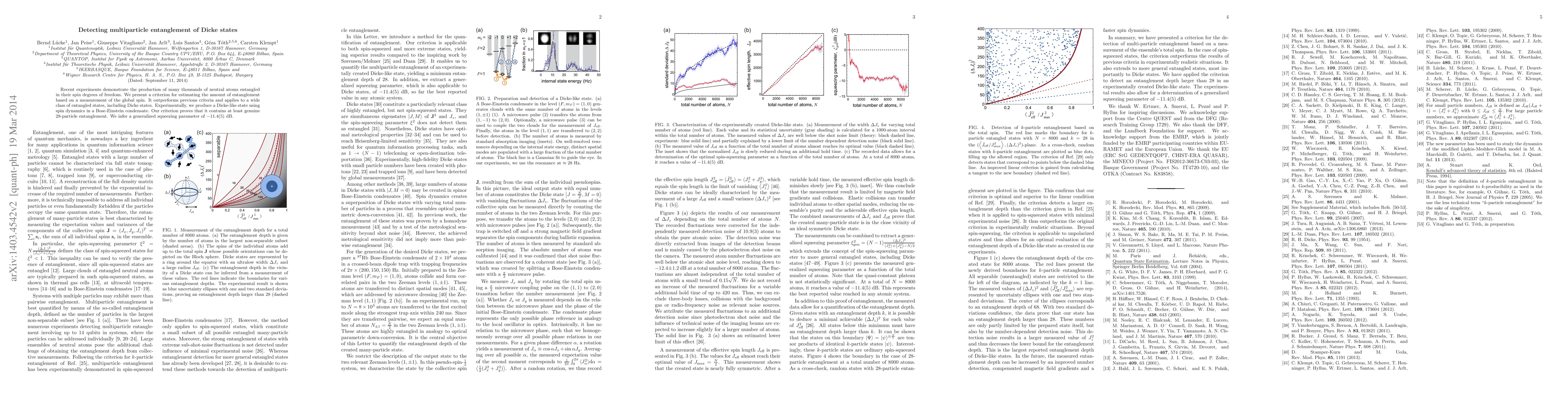 This paper introduces a new criterion for estimating multiparticle entanglement in Dicke states, demonstrating its effectiveness through experimental production of a Dicke-like state in a Bose-Einstein condensate, which shows genuine entanglement among 28 particles with a generalized squeezing parameter of -11.4(5) dB.