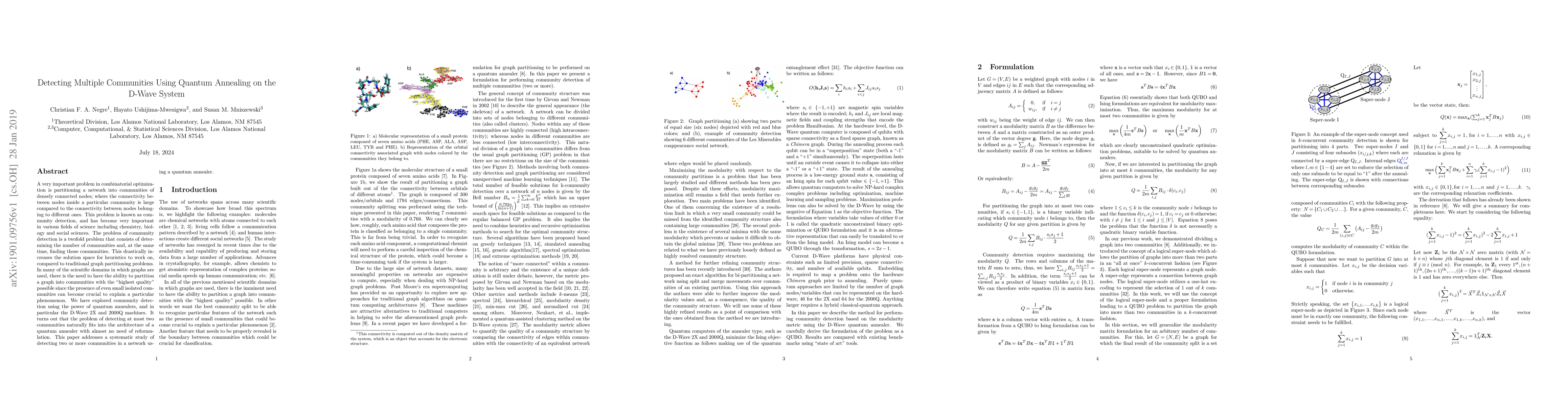 This paper explores the application of quantum annealing, specifically on the D-Wave system, to detect multiple communities in complex networks. It investigates the efficacy of this approach for partitioning graphs into densely connected communities, demonstrating its potential in fields like chemistry and social sciences.