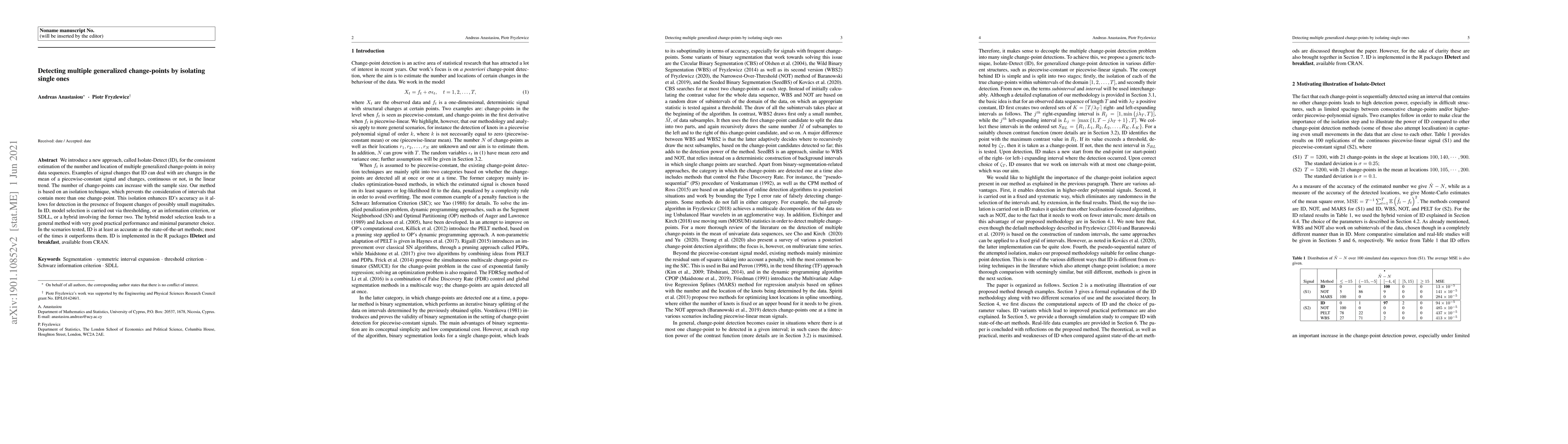 We introduce a new approach, called Isolate-Detect (ID), for the consistent estimation of the number and location of multiple generalized change-points in noisy data sequences. Examples of signal changes that ID can deal with are changes in the mean of a piecewise-constant signal and changes, continuous or not, in the linear trend. The number of change-points can increase with the sample size. Our method is based on an isolation technique, which prevents the consideration of intervals that contain more than one change-point. This isolation enhances ID's accuracy as it allows for detection in the presence of frequent changes of possibly small magnitudes. In ID, model selection is carried out via thresholding, or an information criterion, or SDLL, or a hybrid involving the former two. The hybrid model selection leads to a general method with very good practical performance and minimal parameter choice. In the scenarios tested, ID is at least as accurate as the state-of-the-art methods; most of the times it outperforms them. ID is implemented in the R packages IDetect and breakfast, available from CRAN.