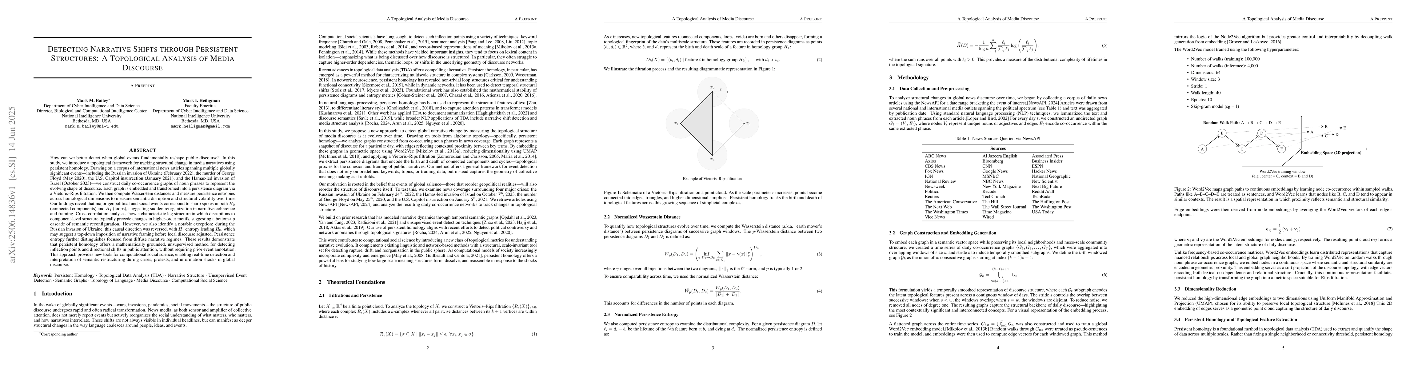 This work is novel because it applies persistent homology to the analysis of media discourse, a relatively unexplored area