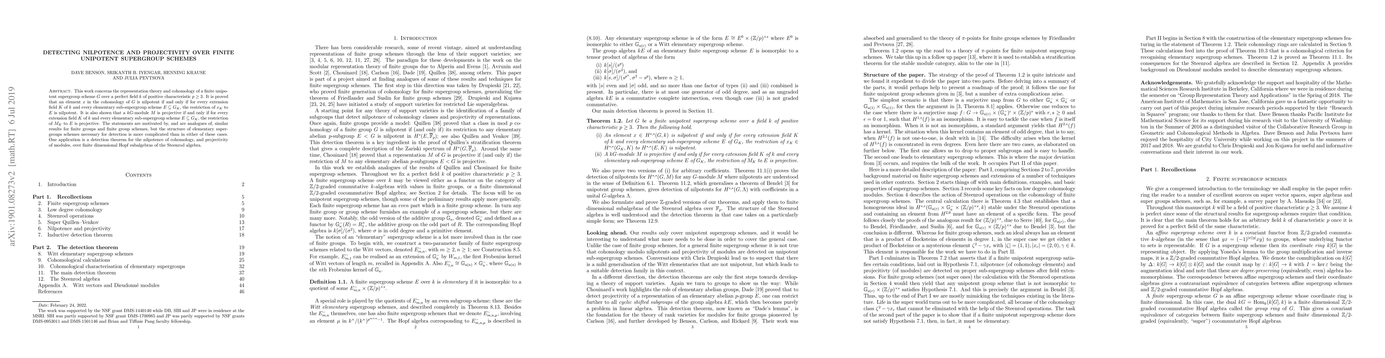 This work concerns the representation theory and cohomology of a finite unipotent supergroup scheme $G$ over a perfect field $k$ of positive characteristic $p\ge 3$. It is proved that an element $x$ in the cohomology of $G$ is nilpotent if and only if for every extension field $K$ of $k$ and every elementary sub-supergroup scheme $E\subseteq G_K$, the restriction of $x_K$ to $E$ is nilpotent. It is also shown that a $kG$-module $M$ is projective if and only if for every extension field $K$ of $k$ and every elementary sub-supergroup scheme $E\subseteq G_K$, the restriction of $M_K$ to $E$ is projective. The statements are motivated by, and are analogues of, similar results for finite groups and finite group schemes, but the structure of elementary supergroups schemes necessary for detection is more complicated than in either of these cases. One application is a detection theorem for the nilpotence of cohomology, and projectivity of modules, over finite dimensional Hopf subalgebras of the Steenrod algebra.
