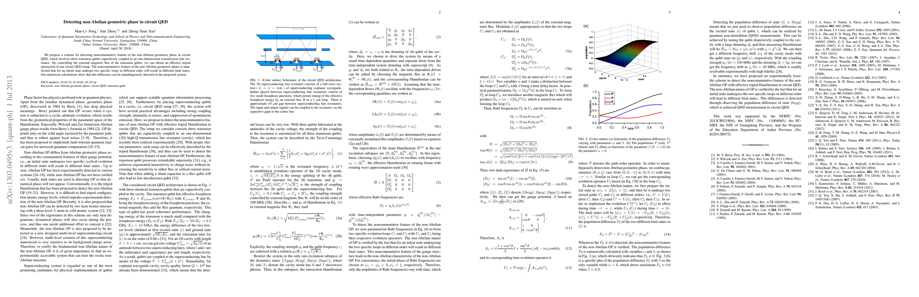 This paper proposes a method to detect non-Abelian geometric phase in circuit QED using three capacitively coupled transmon qubits. By manipulating the external magnetic flux, the system exhibits an effective tripod interaction, allowing for the detection of noncommutative features of the phase, which can be verified through numerical calculations.