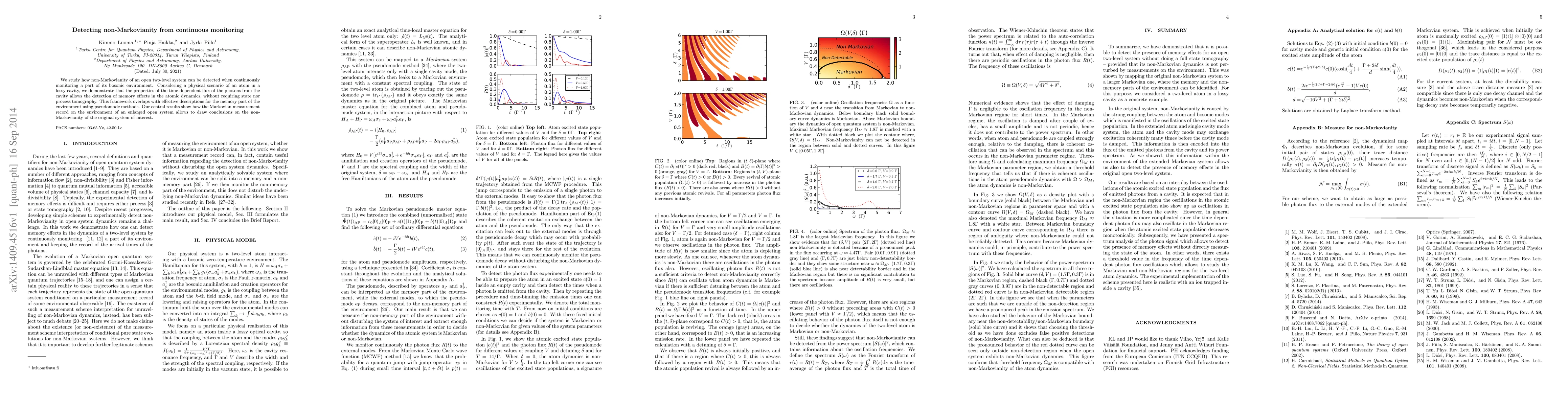 This paper proposes a method for detecting non-Markovianity in an open two-level system through continuous monitoring of its bosonic environment, specifically the time-dependent flux of photons from a lossy cavity. It demonstrates that this approach can reveal memory effects in atomic dynamics without the need for state or process tomography.