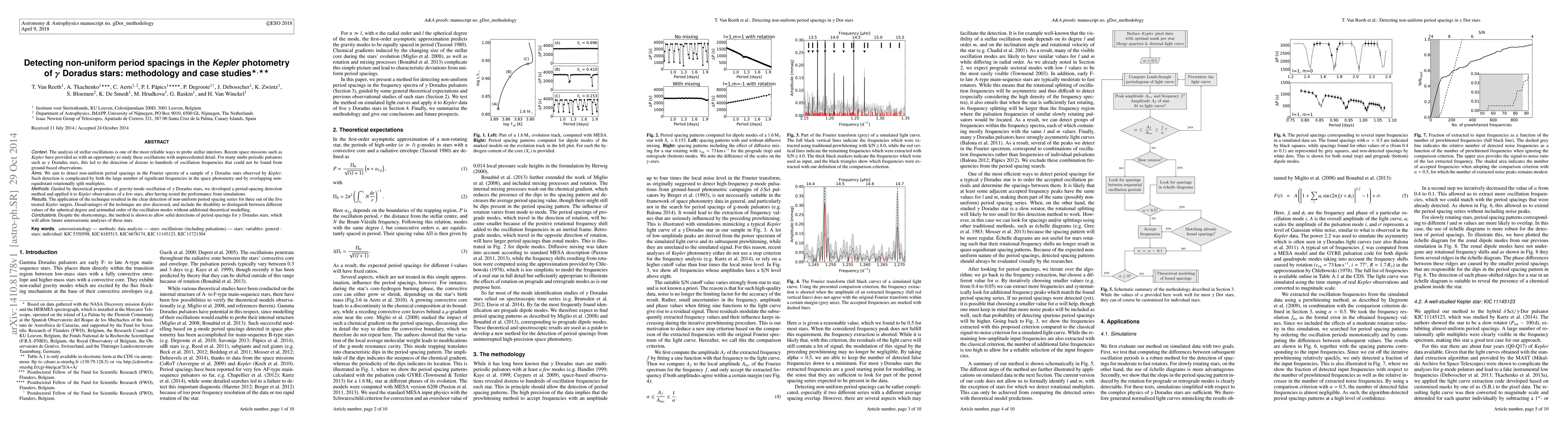 This paper develops a method to detect non-uniform period spacings in the Fourier spectra of gamma Doradus stars observed by Kepler, successfully identifying such patterns in three out of five stars. Despite limitations in distinguishing oscillation mode characteristics, the technique provides valuable data for future asteroseismic studies.