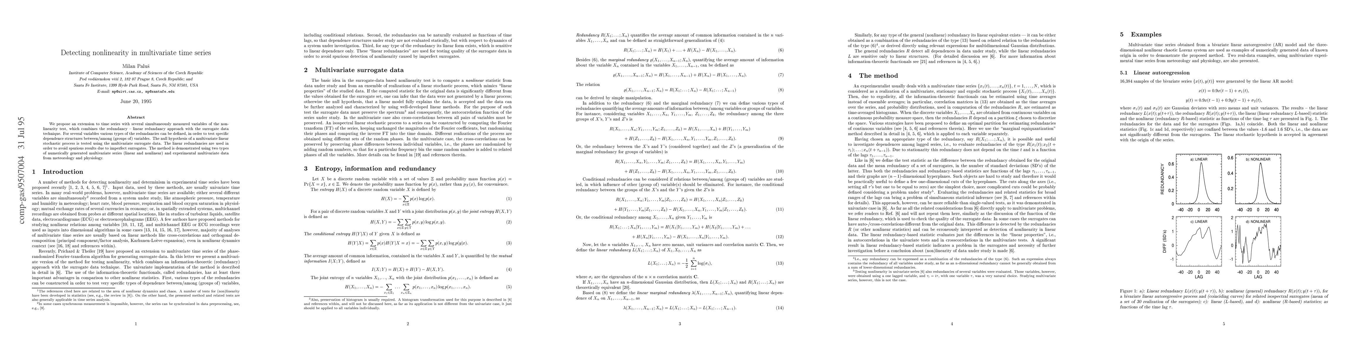 Researchers propose a method to detect nonlinearity in multivariate time series data, combining linear redundancy analysis with surrogate data techniques to test null hypotheses of linear stochastic processes.