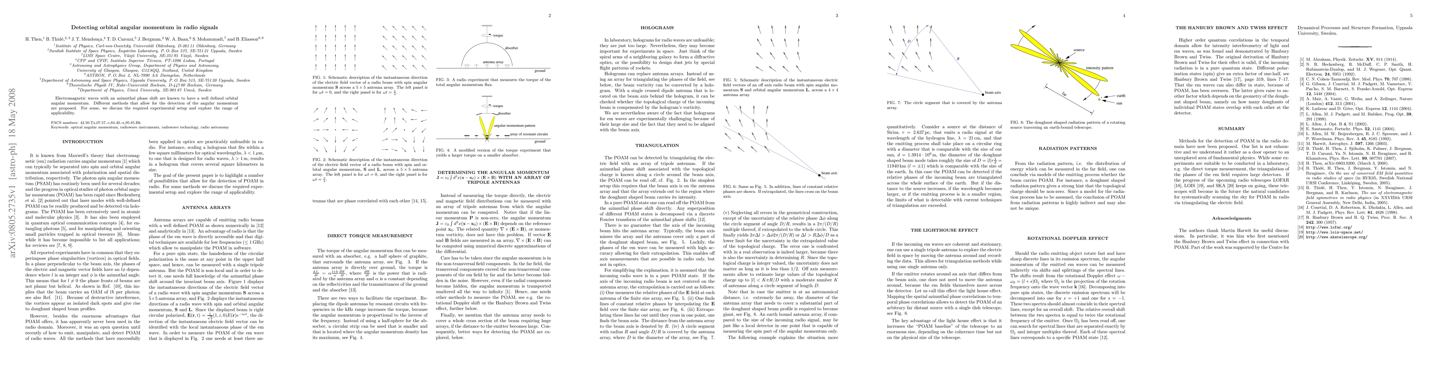 This paper proposes various methods for detecting orbital angular momentum in radio signals, discussing specific experimental setups and exploring their applicability ranges. The focus is on electromagnetic waves with azimuthal phase shifts that carry defined orbital angular momentum.