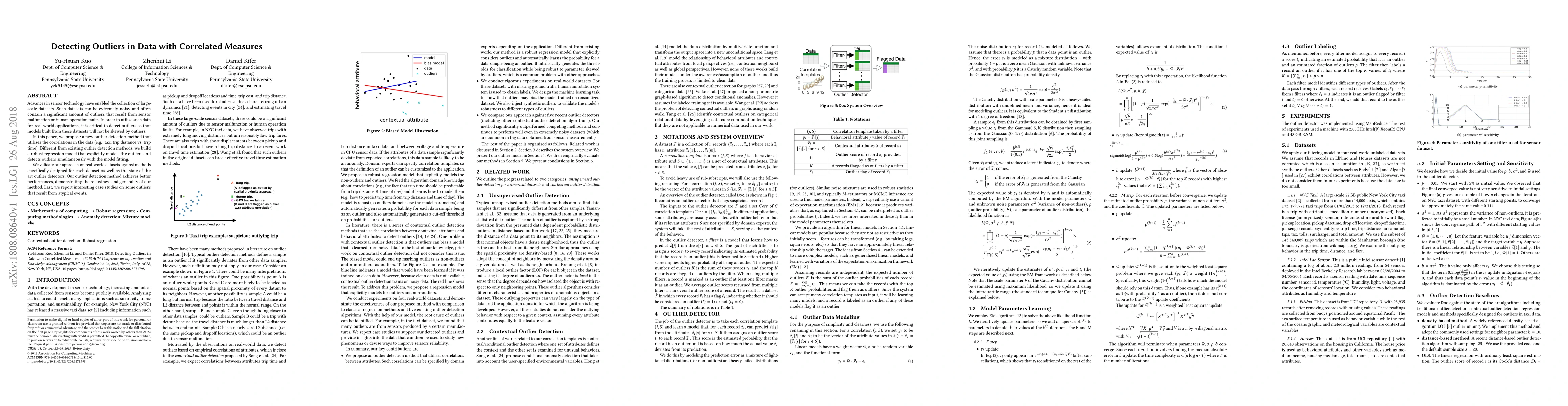 This paper proposes a new method for detecting outliers in large-scale, noisy datasets by leveraging correlations between measures, such as taxi trip distance and time. The method builds a robust regression model that simultaneously detects and models outliers, outperforming existing techniques in validation tests.