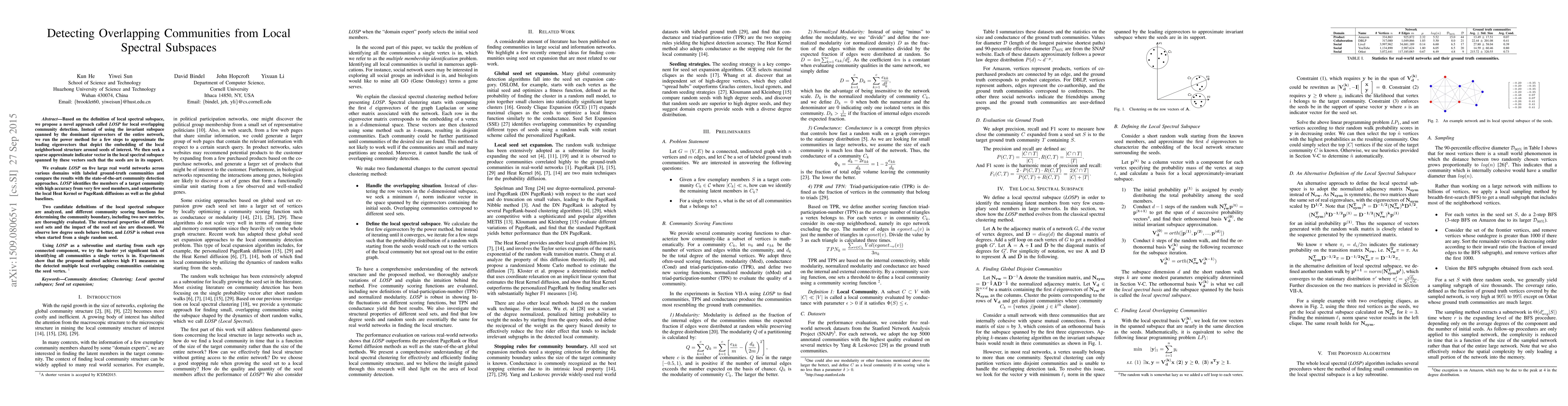 This paper introduces LOSP, a novel approach for detecting overlapping communities based on local spectral subspaces. It outperforms state-of-the-art methods by identifying community members from few seed nodes with high accuracy, especially using low-degree seeds.