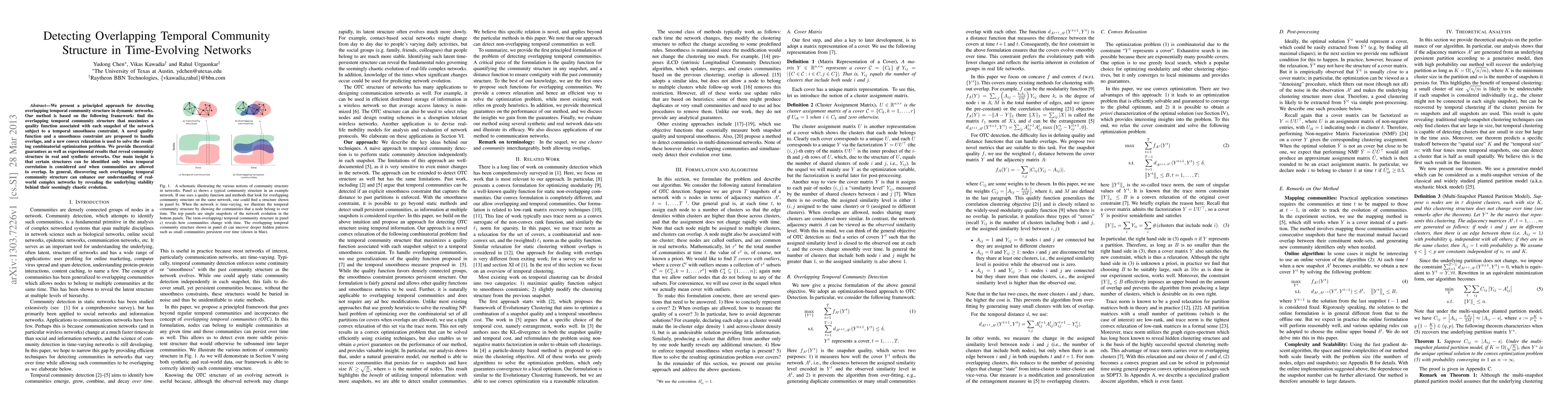 This paper proposes a method for detecting overlapping temporal community structures in dynamic networks by maximizing a quality function with a temporal smoothness constraint, using a novel convex relaxation to solve the optimization problem. The approach reveals underlying stability in complex networks by considering temporal correlations and allowing community overlaps.