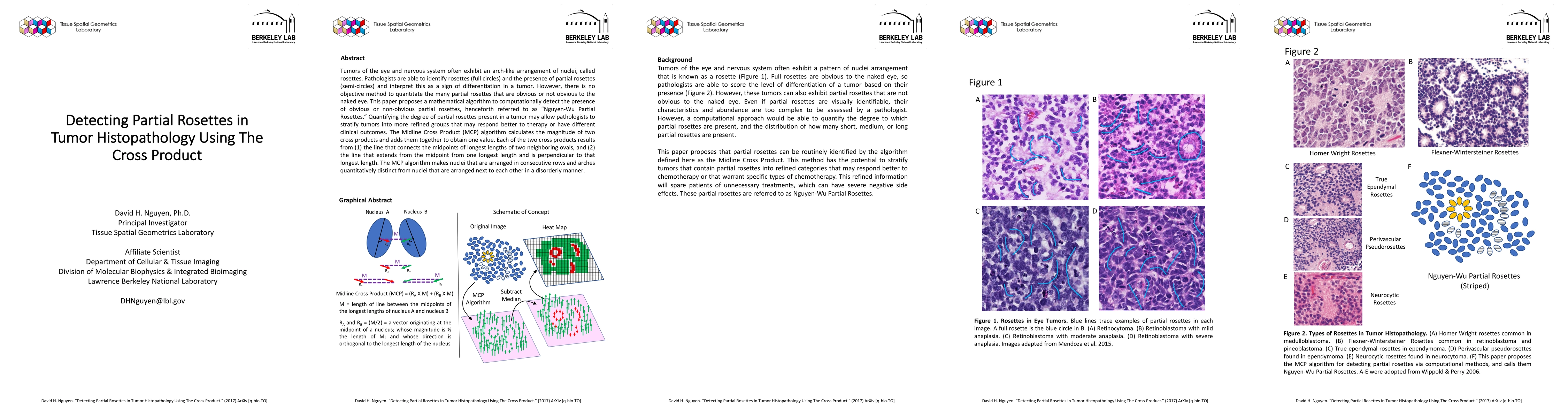 Tumors of the eye and nervous system often exhibit an arch-like arrangement of nuclei, called rosettes. Pathologists are able to identify rosettes [full circles] and the presence of partial rosettes [semi-circles] and interpret this as a sign of differentiation in a tumor. However, there is no objective method to quantitate the many partial rosettes that are obvious or not obvious to the naked eye. This paper proposes a mathematical algorithm to computationally detect the presence of obvious or non-obvious partial rosettes, henceforth referred to as Nguyen-Wu Partial Rosettes. Quantifying the degree of partial rosettes present in a tumor may allow pathologists to stratify tumors into more refined groups that may respond better to therapy or have different clinical outcomes. The Midline Cross Product [MCP] algorithm calculates the magnitude of two cross products and adds them together to obtain one value. Each of the two cross products results from [1] the line that connects the midpoints of longest lengths of two neighboring ovals, and [2] the line that extends from the midpoint from one longest length and is perpendicular to that longest length. The MCP algorithm makes nuclei that are arranged in consecutive rows and arches quantitatively distinct from nuclei that are arranged next to each other in a disorderly manner.