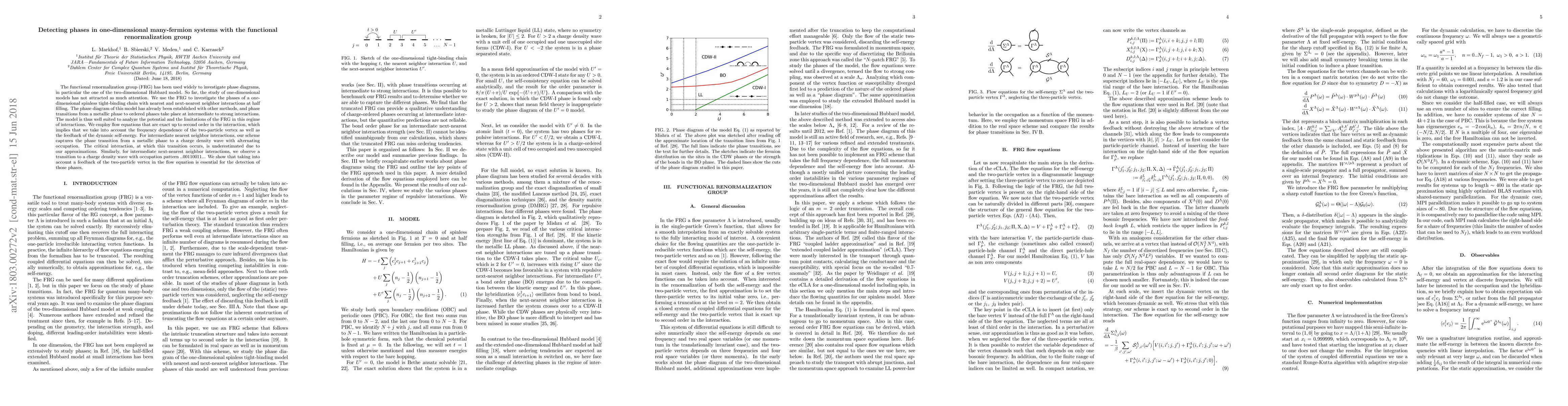 The functional renormalization group (FRG) has been used widely to investigate phase diagrams, in particular the one of the two-dimensional Hubbard model. So far, the study of one-dimensional models has not attracted as much attention. We use the FRG to investigate the phases of a one-dimensional spinless tight-binding chain with nearest and next-nearest neighbor interactions at half filling. The phase diagram of this model has already been established with other methods, and phase transitions from a metallic phase to ordered phases take place at intermediate to strong interactions. The model is thus well suited to analyze the potential and the limitations of the FRG in this regime of interactions. We employ flow equations that are exact up to second order in the interaction, which implies that we take into account the frequency dependence of the two-particle vertex as well as the feedback of the dynamic self-energy. For intermediate nearest neighbor interactions, our scheme captures the phase transition from a metallic phase to a charge density wave with alternating occupation. The critical interaction, at which this transition occurs, is underestimated due to our approximations. Similarly, for intermediate next-nearest neighbor interactions, we observe a transition to a charge density wave with occupation pattern ..00110011... We show that taking into account a feedback of the two-particle vertex in the flow equation is essential for the detection of those phases.