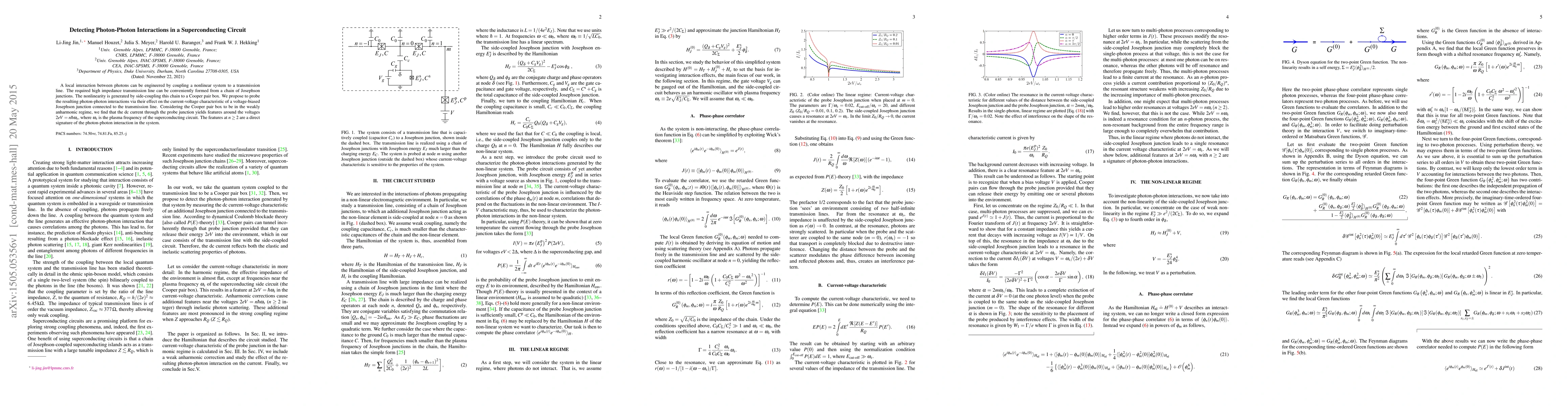 Researchers have created a superconducting circuit that detects photon-photon interactions, allowing them to study local interactions between photons. The detection method uses changes in the current-voltage characteristic of a connected Josephson junction.