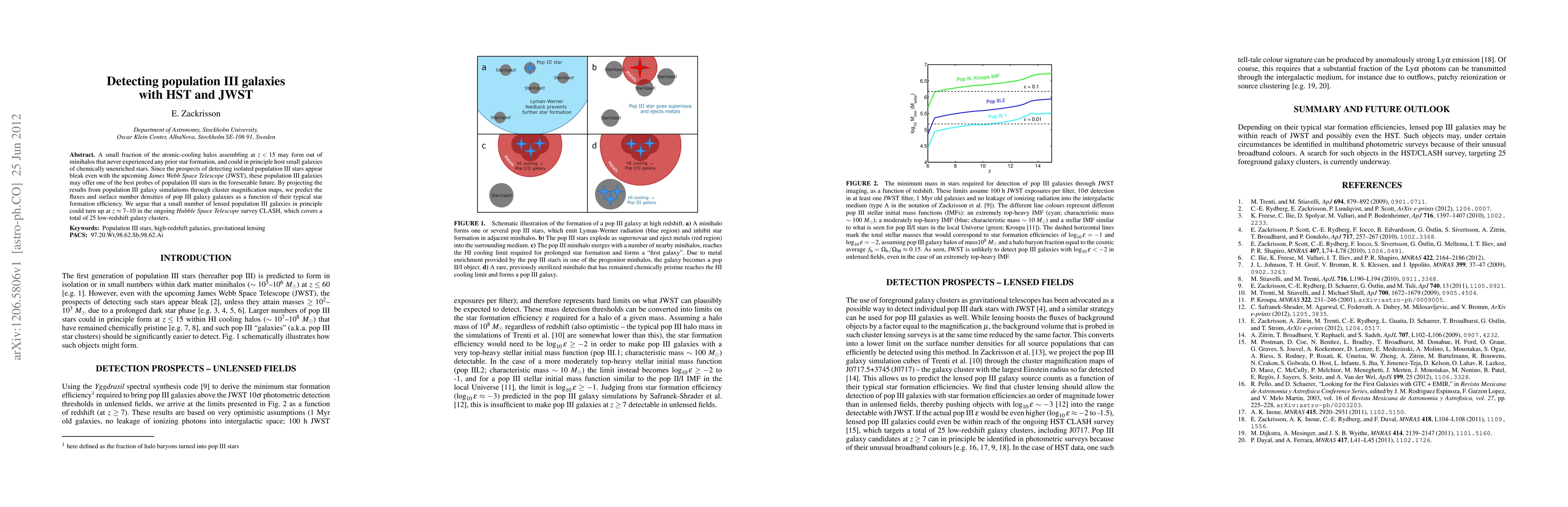 This paper explores the potential of detecting Population III galaxies using the Hubble Space Telescope (HST) and the James Webb Space Telescope (JWST). It predicts that a small number of lensed Population III galaxies could be found in the CLASH survey at redshifts z=7-10, offering a promising method to study these chemically unenriched star-forming galaxies.