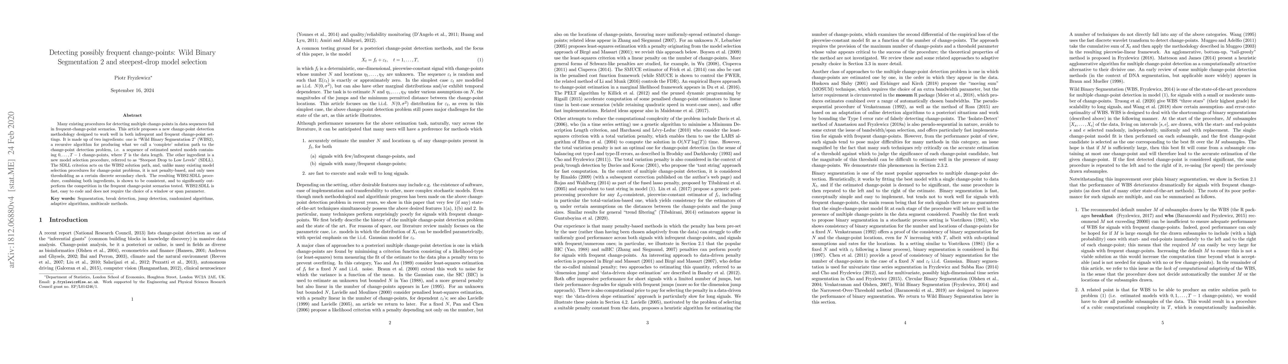 This paper proposes a new change-point detection method called WBS2.SDLL, combining Wild Binary Segmentation 2 (WBS2) and Steepest Drop to Low Levels (SDLL) to effectively detect multiple change-points in data sequences, especially in frequent change-point scenarios. The method is consistent, outperforms existing methods, and is fast, easy to implement, and parameter-free.