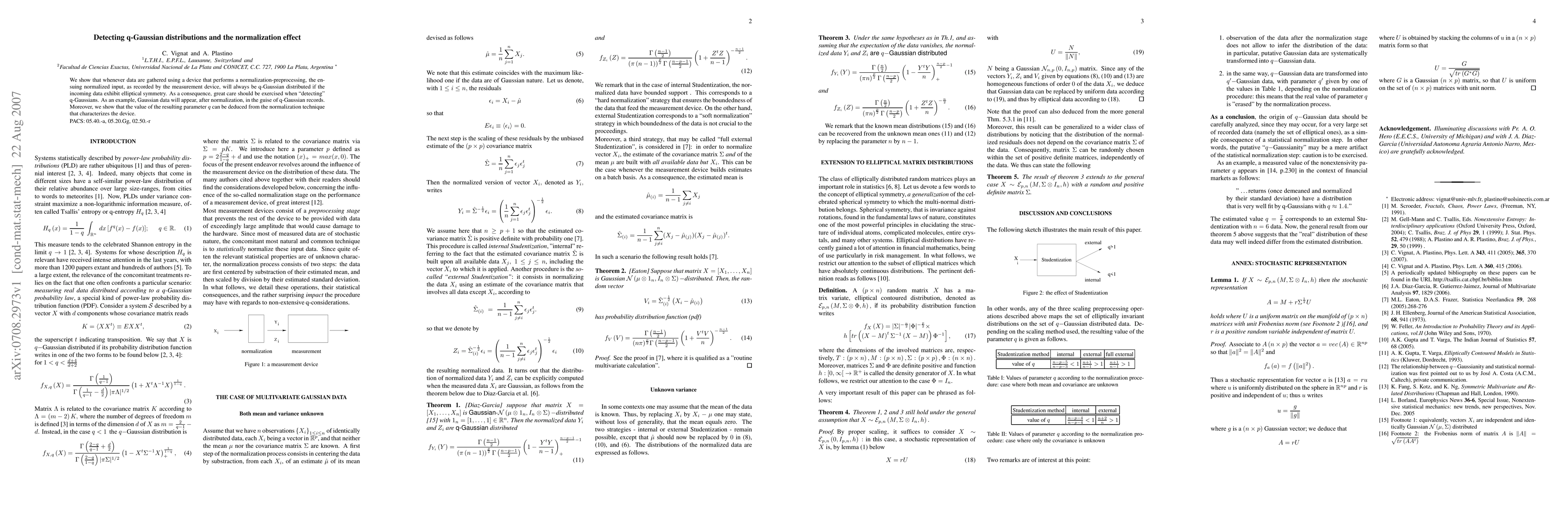 Research finds that data gathered with normalization-preprocessing devices can appear q-Gaussian distributed, even if the original data is Gaussian, due to elliptical symmetry.