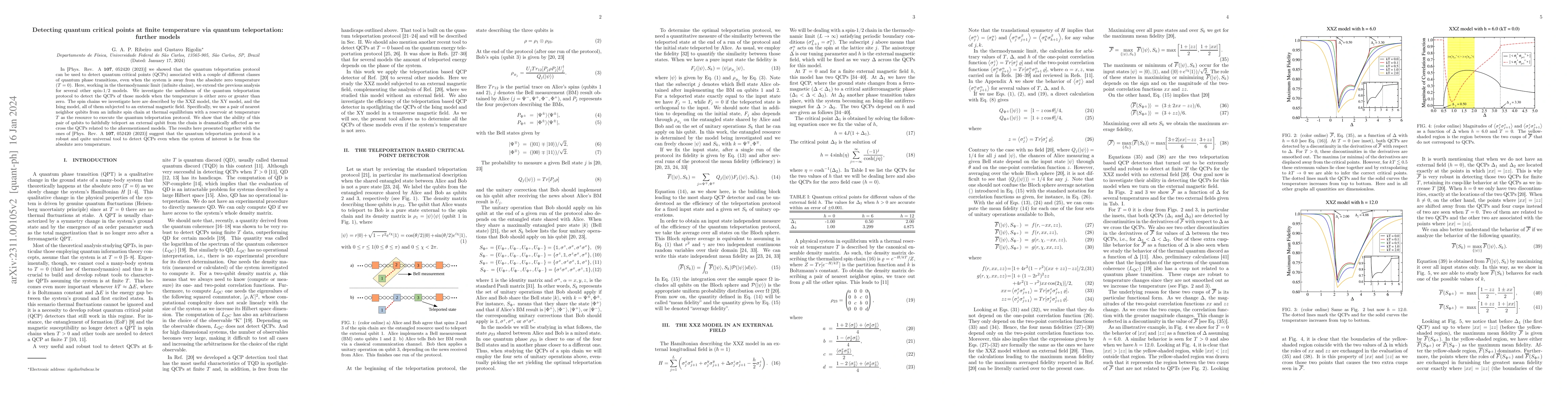 This paper extends the use of quantum teleportation to detect quantum critical points in various spin-1/2 models (XXZ, XY, and Ising) at finite temperatures, showing that the teleportation fidelity is significantly affected near these critical points, thus confirming the protocol's robustness for QCP detection beyond absolute zero.