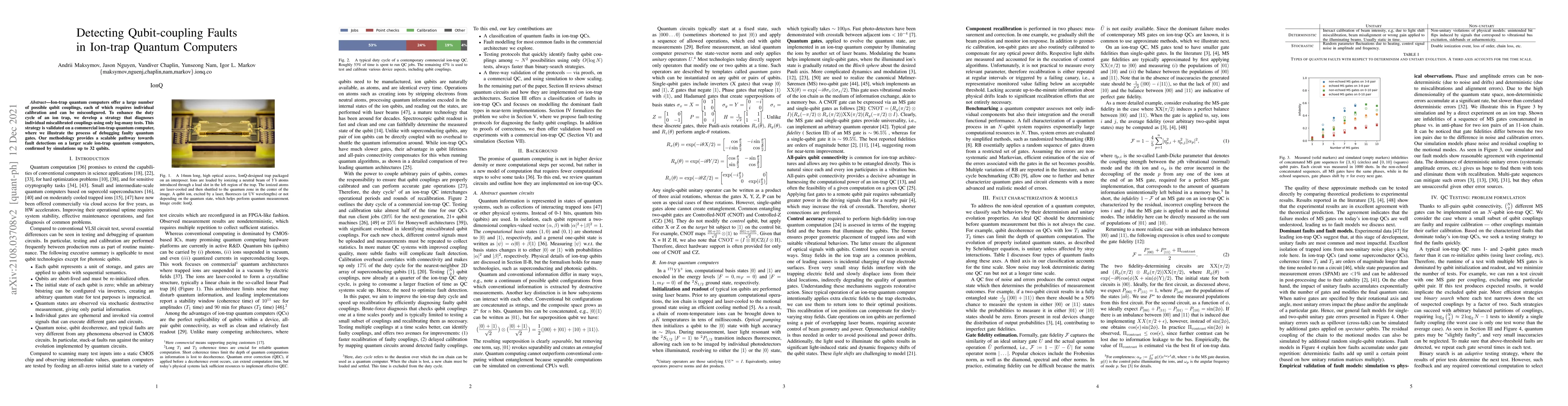 This paper presents a strategy for diagnosing miscalibrated qubit couplings in ion-trap quantum computers using minimal tests, validated on a commercial ion-trap system. The methodology offers a scalable solution for fault detection, confirmed through simulations up to 32 qubits.