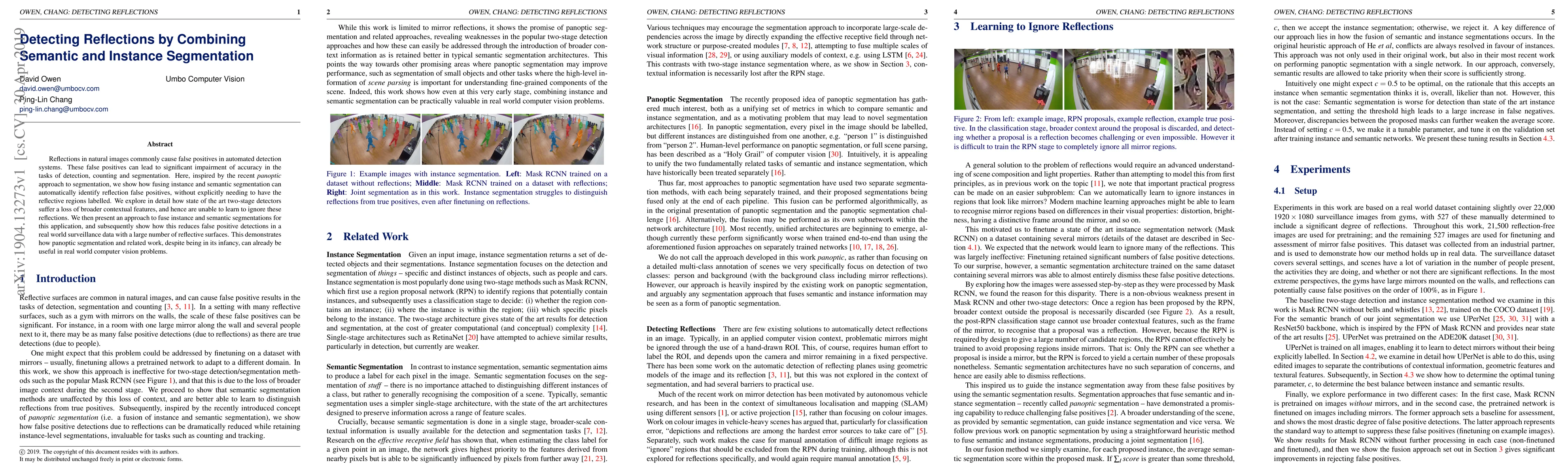 Reflections in natural images commonly cause false positives in automated detection systems. These false positives can lead to significant impairment of accuracy in the tasks of detection, counting and segmentation. Here, inspired by the recent panoptic approach to segmentation, we show how fusing instance and semantic segmentation can automatically identify reflection false positives, without explicitly needing to have the reflective regions labelled. We explore in detail how state of the art two-stage detectors suffer a loss of broader contextual features, and hence are unable to learn to ignore these reflections. We then present an approach to fuse instance and semantic segmentations for this application, and subsequently show how this reduces false positive detections in a real world surveillance data with a large number of reflective surfaces. This demonstrates how panoptic segmentation and related work, despite being in its infancy, can already be useful in real world computer vision problems.
