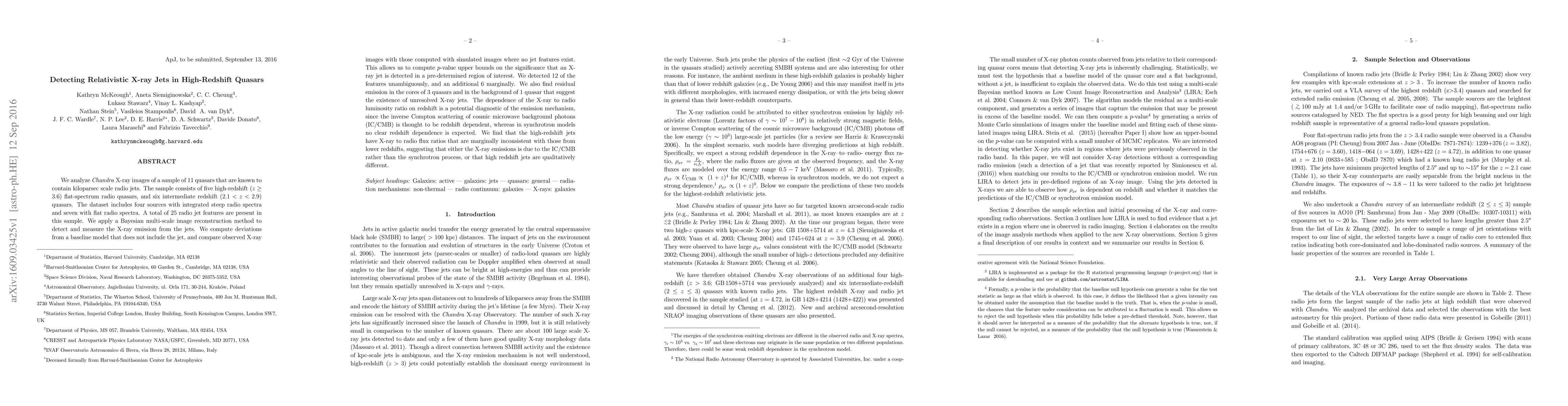 This study uses Chandra X-ray images to detect relativistic jets in high-redshift quasars, identifying 12 unambiguous and 6 marginal X-ray jet features. The findings suggest that high-redshift jets may exhibit different X-ray to radio luminosity ratios, hinting at a potential redshift-dependent emission mechanism.
