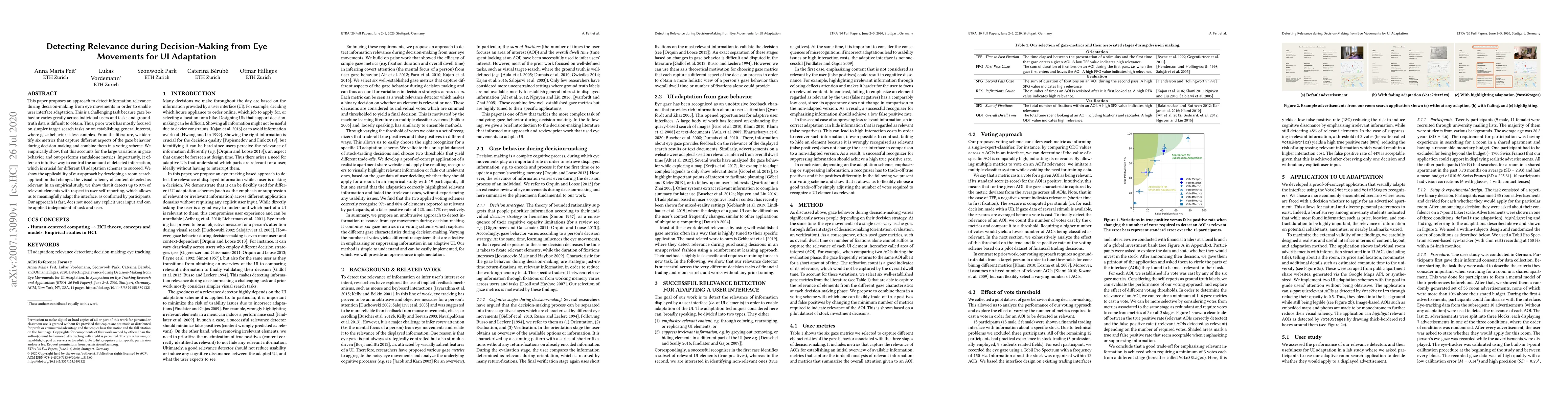This paper proposes a method to detect relevant information during decision-making from eye movements for UI adaptation, achieving up to 97% accuracy in detecting relevant elements.